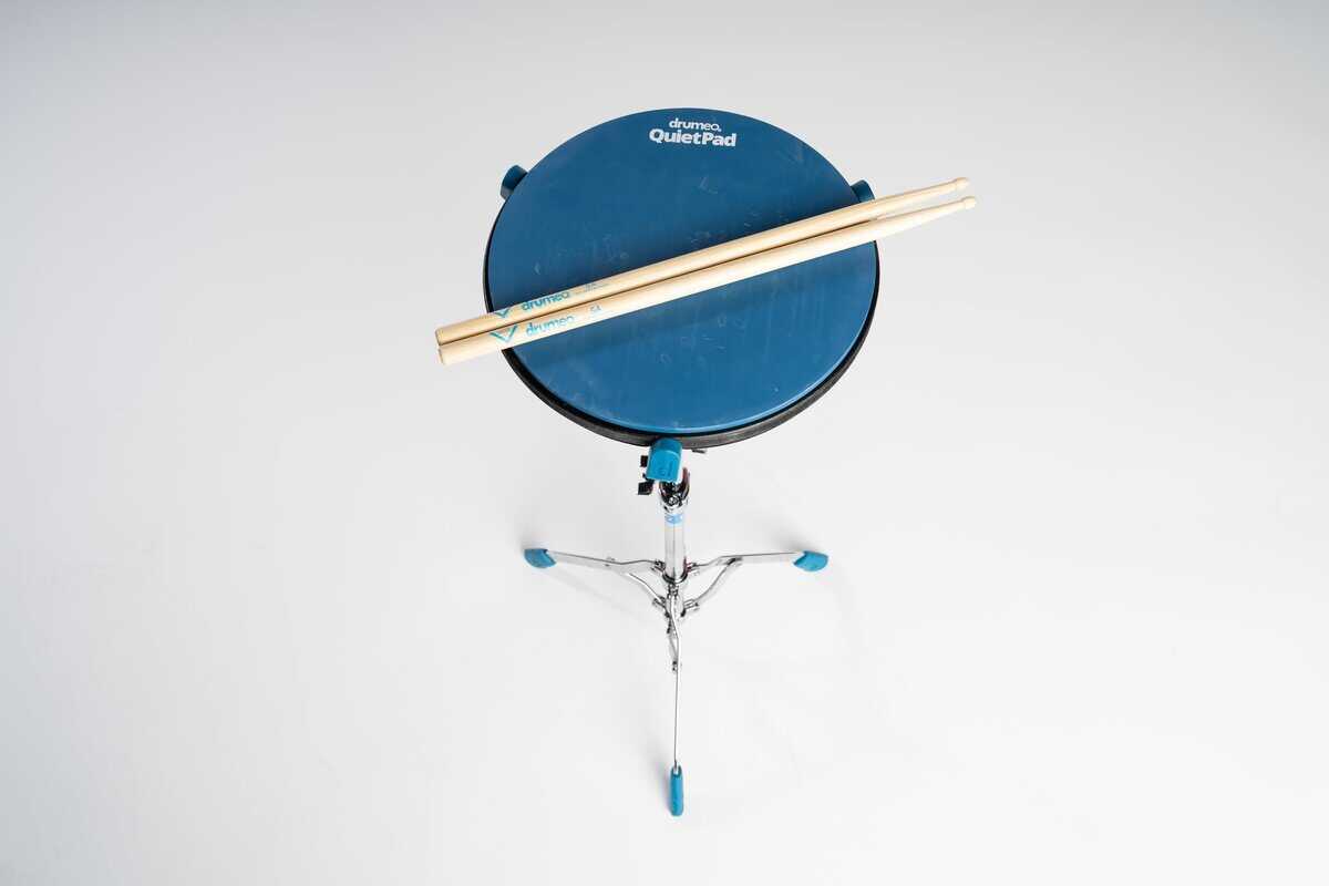 El drumeo QuietPad es una almohadilla de práctica de batería con una superficie de 12 pulgadas. El lado azul tiene la sensación y rebote clásico de «goma de mascar», mientras que el lado negro proporciona una sensación más suave y un volumen de impacto reducido. Perfecto para practicar en silencio y mejorar tus habilidades de batería en casa o en cualquier lugar.