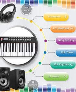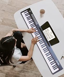 ¡El número 1 en ventas de iLearnMusic! ¡Practica en cualquier lugar! Practica mientras estás de viaje de negocios, o tráelo a un parque, con nuestro diseño innovador, ¡puedes llevarlo a cualquier lugar! ¡Altavoces incorporados te dan la capacidad de tener conciertos improvisados sobre la marcha! Si necesitas más privacidad mientras tocas, simplemente conecta auriculares. Teclado estándar de tamaño completo: el teclado digital de iLearnMusic cuenta con teclas semi-pesadas estándar (relación de tecla de piano 1:1), permitiendo un toque de dedo cómodo y un sonido preciso. Fabricado en ABS premium para garantizar la suavidad adicional de las teclas y el brillo duradero. Diseño multifuncional: cuenta con altavoz incorporado e interfaz multifuncional, soporte de línea midi y conexión a computadora, y también soporte para reproductor de MP3, función de transposición, función de bluetooth, que satisfacen sus diversas necesidades y logran más creación. Excelente para todos los niveles: el piano está hecho de aleación de aluminio premium para garantizar una estructura confiable para un uso prolongado. Teclado de aprendizaje perfecto para adultos, niños, principiantes y usuarios de todos los niveles de habilidad. Perfecto para la enseñanza en grupo: este diseño enrollable es perfecto para entornos de aula y permite que el piano se almacene de manera fácil. El piano contiene muchas otras funciones avanzadas disponibles, como el modo estudiante/enseñanza, un modo diseñado para ayudar al usuario a aprender a tocar el piano.