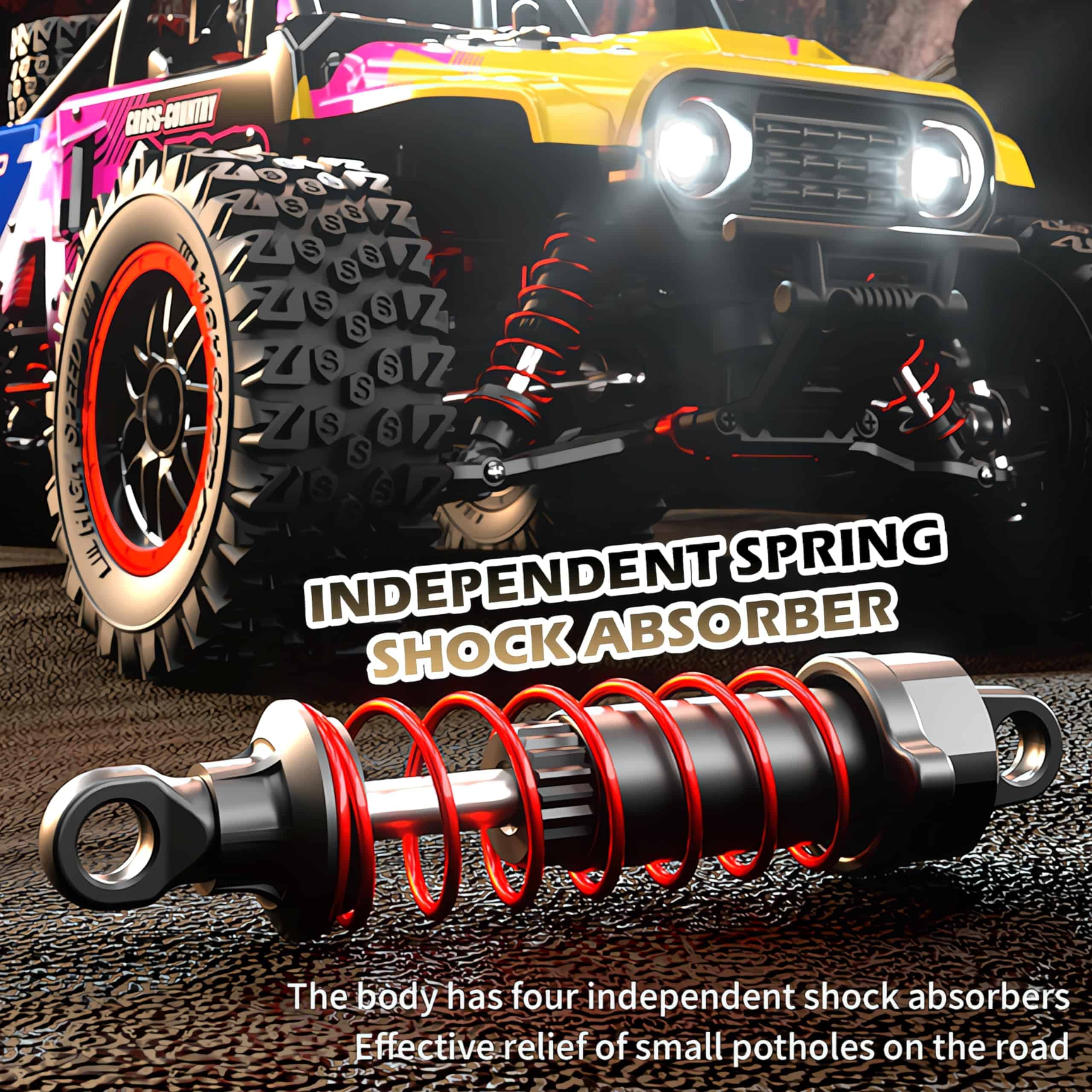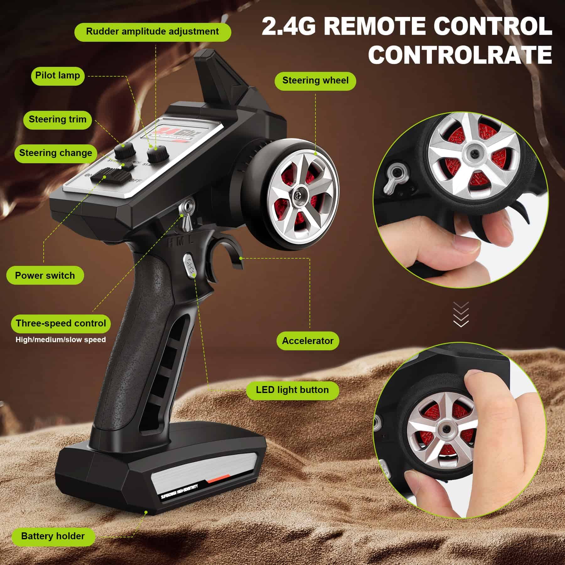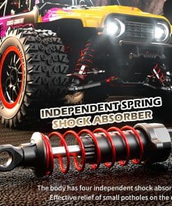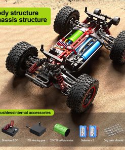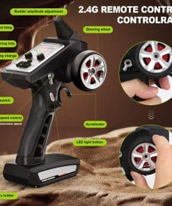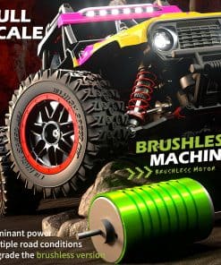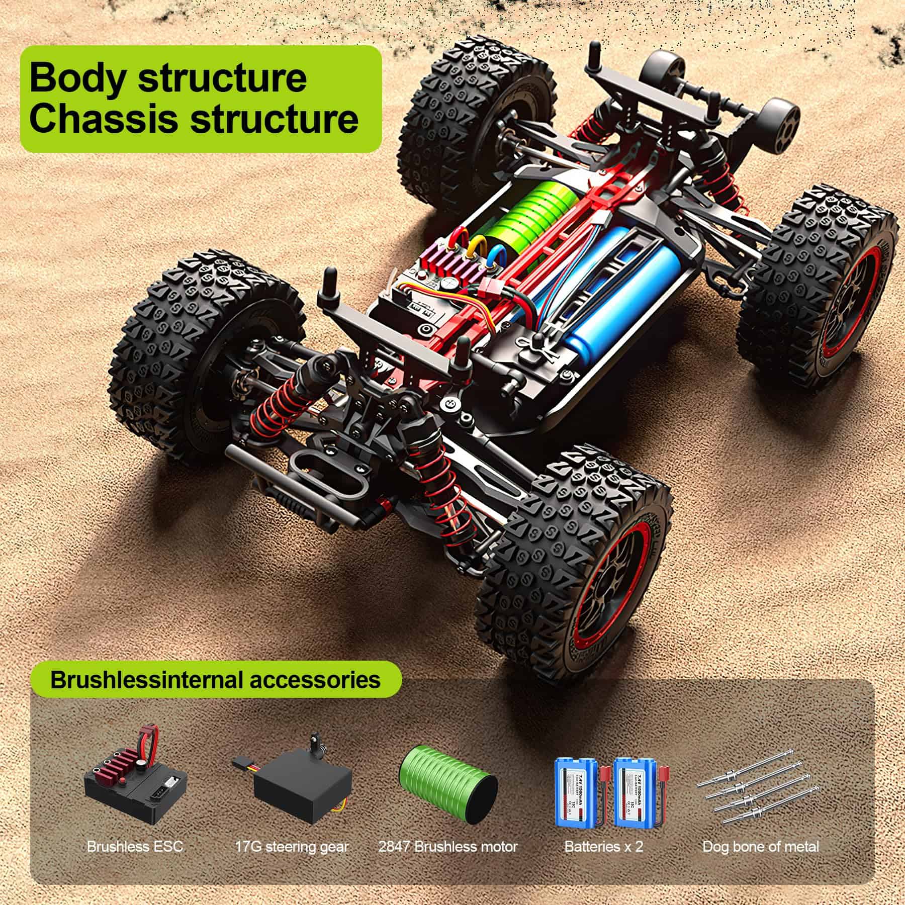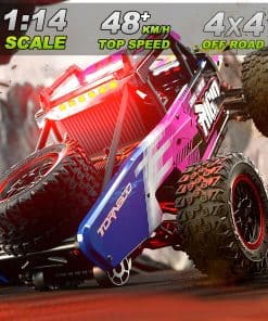 1. Coche RC Brushless rápido equipado con un motor brushless 2847 4000KV y un motor de dirección de tres líneas 17G. La caja receptora brushless independiente y el ESC de 35A garantizan un manejo estable y una respuesta rápida durante intensas competiciones de carreras. Fácilmente alcanza velocidades de hasta 36 mph (58 km/h) en condiciones óptimas. 2. Construcción sólida y partes metálicas: Chasis de aleación de aluminio resistente y parachoques y amortiguadores de aceite metálicos superan el impacto. Piezas de cromo macizo, como el diferencial y los rodamientos de bolas. Ejes de aleación CVD grandes y suspensiones reforzadas aumentan la durabilidad. 3. 2 baterías de larga duración: Equipado con dos baterías Li-ion de 7,4V 1500mAH 15C y compartimentos para 3 pilas AA, ofrece suficiente tiempo de juego sin necesidad de recargas frecuentes. Disfruta de una diversión ininterrumpida que permite un uso prolongado. Di adiós a las interrupciones constantes durante tus aventuras de RC. 4. Rendimiento potente: Este coche RC está equipado con neumáticos grandes y anchos de 82mm de diámetro, combinados con muelles de amortiguación de metal y engranajes de diferencial planetarios, lo que permite realizar fácilmente grandes saltos, volteos de rueda y acrobacias de salto hacia atrás en varios terrenos. 5. ESC Impermeable a Salpicaduras: El control electrónico de velocidad impermeable a salpicaduras de 35A (ESC) permite que tu camión RC 4WD de campo traviesa cruce charcos de barro y siga conduciendo incluso en días lluviosos. El sistema electrónico es versátil y duradero en varias protecciones, como protección contra sobrecalentamiento y sobre corriente, y corte de voltaje de batería bajo. Sin embargo, no se recomienda el uso de este ESC con una batería de 3S o superior, y se debe evitar la invasión de agua de mar. 6. Sistema de control remoto excelente: Este rápido coche de control remoto se puede controlar con un sistema de radio de 2.4GHz desde una distancia de hasta 390 pies y puede competir con muchos coches de carreras sin interferencias de señal. 7. Más grande es mejor: El camión Rc 1:14 es significativamente más grande que otros modelos principales en el mercado actual. Un tamaño y modelado más grandes brindan una experiencia de conducción ultra realista. Se puede decir que este es un gran regalo para los chicos grandes.