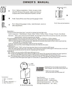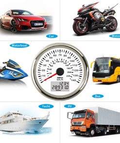 Características: -Material: sus316L+cristal antivaho+pvc -Diámetro de instalación: 85mm o 3-3/8″ -Grado impermeable y a prueba de polvo IP68 -Rango: 0-140 MPH 0-220 Kmh -Voltaje de trabajo: 9-32VDC -Temperatura de funcionamiento: -30-75 -Temperatura de almacenamiento: -40-85 -Grado impermeable y a prueba de polvo IP67 -Con diseño de amplio voltaje de trabajo (voltaje de operación a largo plazo: 9-32V, Máximo hasta: 36V (1 min)) -7 Colores de luz de fondo: Rojo, Verde, Azul, Blanco, Amarillo, Césped, Naranja, Púrpura, Automático. -Motores paso a paso utilizados para la gama completa de medidores de pasos, gran característica con su menor consumo de energía, vida más larga, mayor precisión, etc. -1 año de garantía, 100% Protección impermeable y antivaho Errores comunes de TRIP: Al encender, COG TRIP sigue parpadeando, significa que aún no recibe señal. E01: El TRIP no recibe señal GPS. E02: El velocímetro perdió la señal durante el trabajo. 30 segundos después, la velocidad se reiniciará desde cero. E03: El TRIP perdió la señal de la antena GPS. 10 segundos después, la velocidad se reiniciará desde cero. Incluye: 1x Velocímetro GPS 1x Antena de Velocidad GPS 1x Enchufe múltiple 1x Instrucciones de Instalación