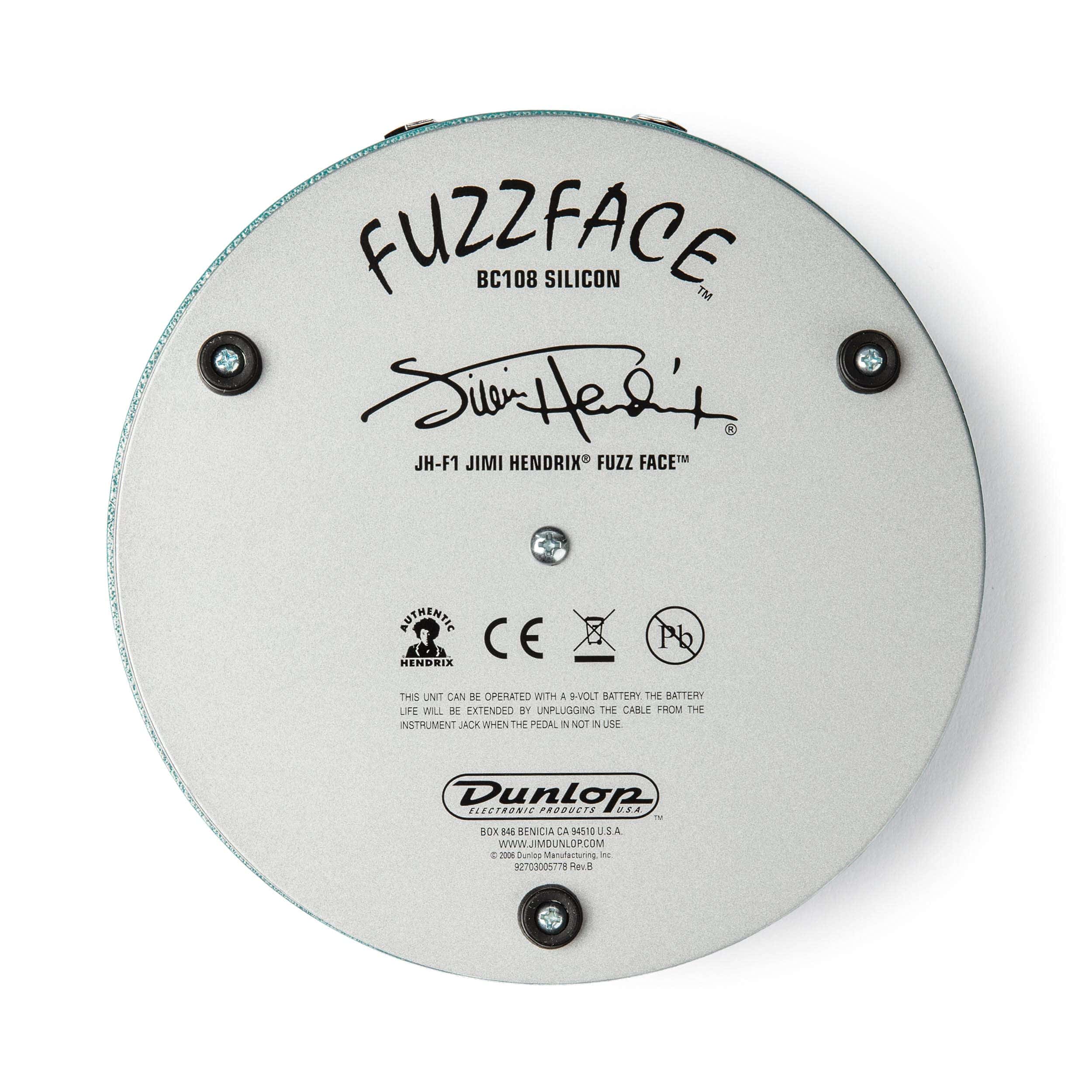 Hendrix era el maestro del fuzz, un artista con muchos matices sutiles bajo su comando. Su romance con el legendario pedal Fuzz Face comenzó en los primeros días de la Experience y continuó evolucionando a lo largo de su breve pero ardiente carrera. El Dunlop Jimi Hendrix Fuzz Face es una reproducción meticulosa fiel del Fuzz Face de 1969-70 de Dallas Arbiter que Jimi usó en álbumes clásicos como ‘Band of Gypsys’. El departamento de ingeniería de Dunlop examinó montones de Fuzz Faces vintage, enfocándose en unas pocas unidades que poseían ese inconfundible vudú de Jimi. El Fuzz Face de Hendrix está construido alrededor del transistor de silicio BC108 tonal. Es auténtico en cada detalle, una placa de circuito marrón con cableado a mano sin máscara de soldadura y circuitos cuidadosamente emparejados con las especificaciones originales. La apariencia es 100% precisa también, con ese chasis circular genial con clones forjados de los botones originales del Fuzz Face en el raro y vintage acabado turquesa martillado. Verdaderamente un objeto coleccionable y jugable para cualquier fanático de Hendrix o del Fuzz Face. Potencia: Batería de 9 voltios individual.