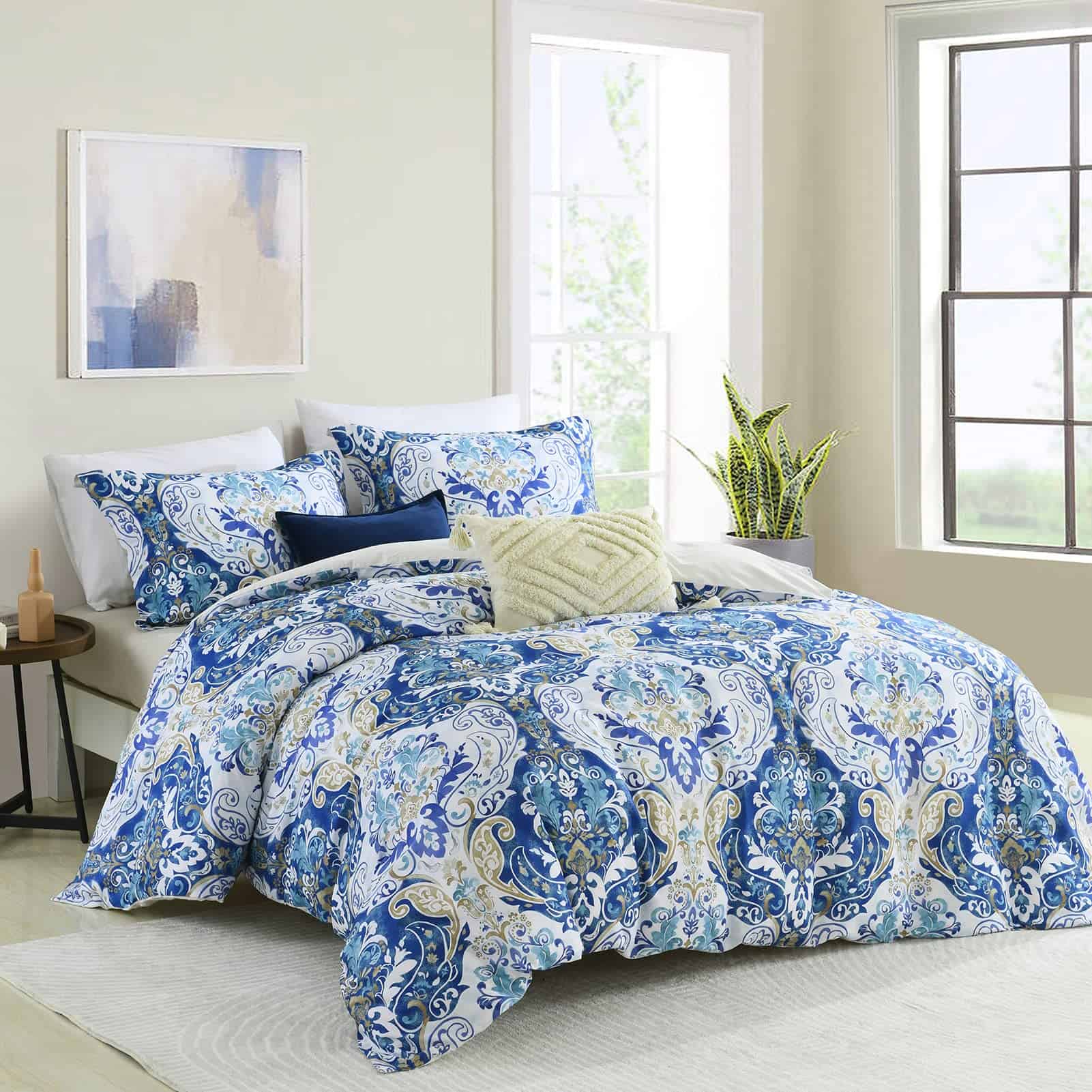 1. 100% ALGODÓN: Esta funda de edredón tamaño queen está hecha de tela 100% algodón que es no estática y antialérgica. Probado de forma independiente con certificación OEKO-TEX Standard 100, nuestras fundas de edredón queen son garantizadas de estar libres de sustancias dañinas. 2. DISEÑO ÚNICO: El verde es un color versátil que puede complementar una amplia gama de estilos decorativos y esquemas de color, haciendo que la funda de edredón queen sea una elección versátil para muchos dormitorios diferentes. 3. CIERRE DE CREMALLERA: La funda de edredón queen cuenta con una cremallera oculta que esconde bien la cremallera, ahorrando tiempo al abrir y cerrar y asegurando que el edredón no quede expuesto. 4. 8 LAZOS EN LAS ESQUINAS: Ocho lazos en la funda de edredón tamaño queen mantienen el edredón en su lugar para que permanezca plano y no se salga del edredón. 5. INCLUYE JUEGO DE FUNDA DE EDREDÓN: El juego de funda de edredón queen incluye 1 funda de edredón (90″ x 104″) y 2 fundas de almohada (20″ x 36″). (Edredón y relleno de almohada no incluidos)