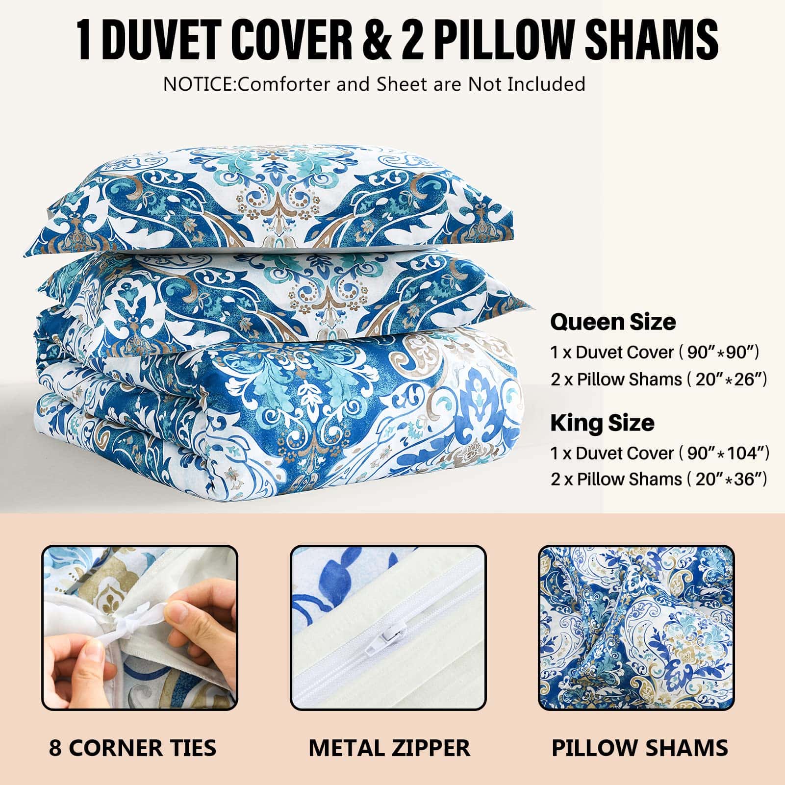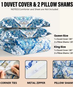 DUOMING Funda de Edredón Queen de Algodón – 100% Algodón
