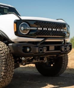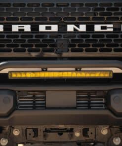 2. Opciones de iluminación – Para iluminación adicional en off-road, puedes elegir montar una barra de luz de 13 a 20 pulgadas de una o dos filas encima o debajo del bull bar, o luces de pod de 3 pulgadas encima de la barra. 3. Diseño duradero – El bull bar está hecho de acero de alta calidad y acabado en un resistente recubrimiento en polvo negro de microtextura para un aspecto elegante que complementa el estilo exterior de tu vehículo. 4. Compatibilidad – Nuestro bull bar es compatible con la 6ta generación (2021-2024) de Ford Bronco, y está diseñado específicamente para el parachoques delantero OEM Capable. 5. Instalación – El proceso de instalación del bull bar de acero es sencillo y solo toma alrededor de 2 horas para completar. Las pestañas de luz incluidas son ajustables y desmontables para una configuración fácil de cada iluminación. 6. Ten en cuenta – Este bull bar es solo compatible con el Parachoques Delantero Capable, y no se ajustará al parachoques delantero de plástico o modular. 7. Ten en cuenta – Se requiere taladrar para la instalación, y el bull bar estará a la vista de la cámara delantera (si aplica).