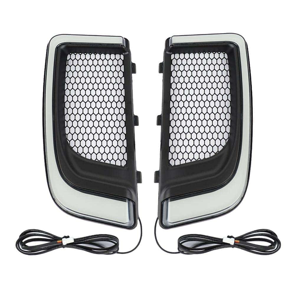 Las luces LED de rejilla inferior SUNBURST para Harley Davidson son ultra brillantes, con iluminación de LED completamente difundida con luces de marcha blancas puras y señales de giro ámbar. Mejora el estilo de tu frontal y aumenta la visibilidad hacia otros vehículos con nuestros reemplazos de LED fáciles de instalar.