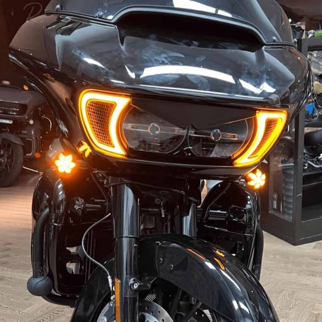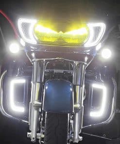 ¡Aumenta tu seguridad iluminando tu Road Glide! Señala a los conductores distraídos utilizando nuestras brillantes luces de marcha blancas HALOS Vent LED y señales de giro. Las brillantes luces de marcha tienen un ángulo de visión mayor, permitiéndote ver los lados de la carretera, señales y peligros. Las luces de marcha compatibles con Harley Davidson Road Glide te ayudan a ver y ser visto por otros conductores.