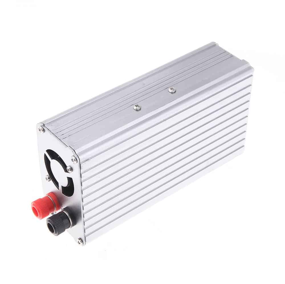 Este inversor de corriente para auto convierte DC 12V a AC 110V. Perfecto para uso en el auto, alimenta computadoras portátiles, reproductores de DVD, cámaras digitales, etc. ¡No más se quede sin batería! Características: 1000W inversor de corriente para auto, convierte DC 12V a AC 110V. Perfecto para uso en el auto, alimenta computadoras portátiles, reproductores de DVD, cámaras digitales, etc. Voltaje de salida estable y preciso. Protección contra temperatura alta, protección contra sobrecarga, protección contra sobre voltaje. Alarma de audio por nivel bajo de batería antes del apagado automático. Ventilador de refrigeración incorporado con poco ruido. Especificaciones: Voltaje de entrada: DC 12V Voltaje de salida: AC 110V 60Hz Potencia de salida: 1000W Forma de onda de salida: Onda sinusoidal modificada Alarma de batería baja (sin carga): DC 10.2~10.8V Apagado de batería baja (sin carga): DC 9.7~10.3V Apagado de batería alta (sin carga): DC 14~16V Eficiencia máxima: >90% Temperatura de funcionamiento: 0~40 grados centígrados Tamaño del producto: Aprox. 18.5 x 9.5 x 5.5 cm Peso del producto: 542g Peso del paquete: 772g Lista de paquetes: 1 Inversor de Corriente 1 Cable de Encendedor de Cigarrillos 1 Cable de Pinza de Batería