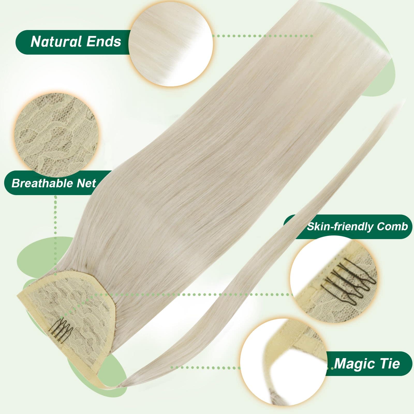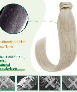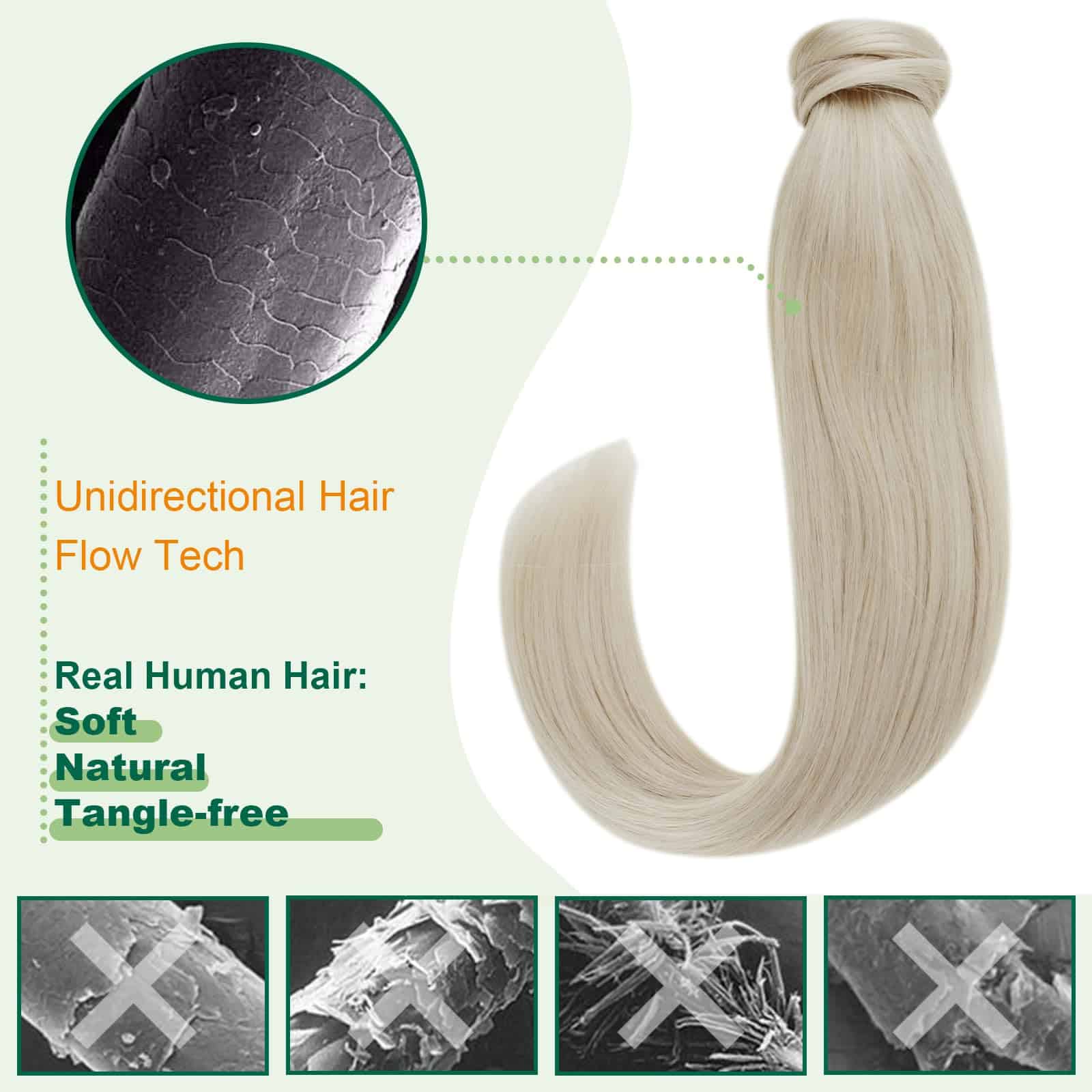 Easyouth Extensión de Cola de Caballo Cabello Humano Rubio