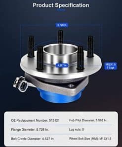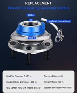 Este conjunto de rodamiento de rueda es ideal para varios modelos de Buick, Cadillac, Chevrolet, Oldsmobile y Pontiac. Compatible con modelos de perno de 5 con ABS. Incluye 2 piezas de conjunto de rodamiento de rueda delantera.