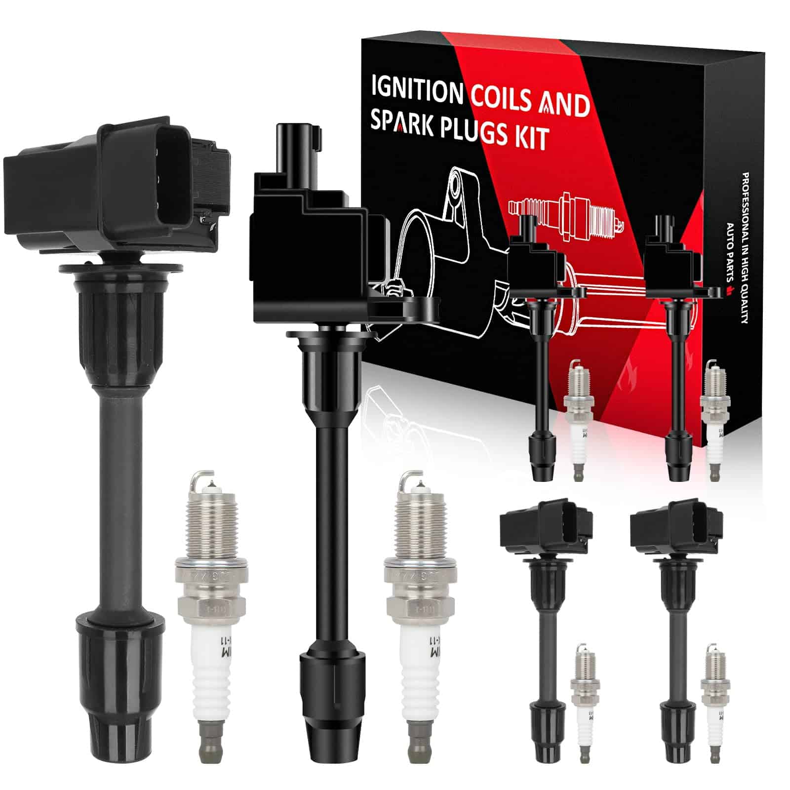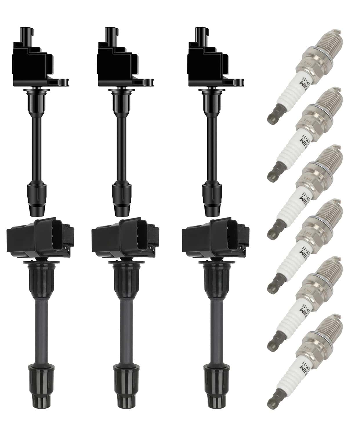 ECCPP Bobina de Encendido Bobinas y Bujías de Iridio UF348+UF332 para Nissan Maxima 2000-2001 y para Infiniti I30 2000-2001, 3.0L juego de 6
