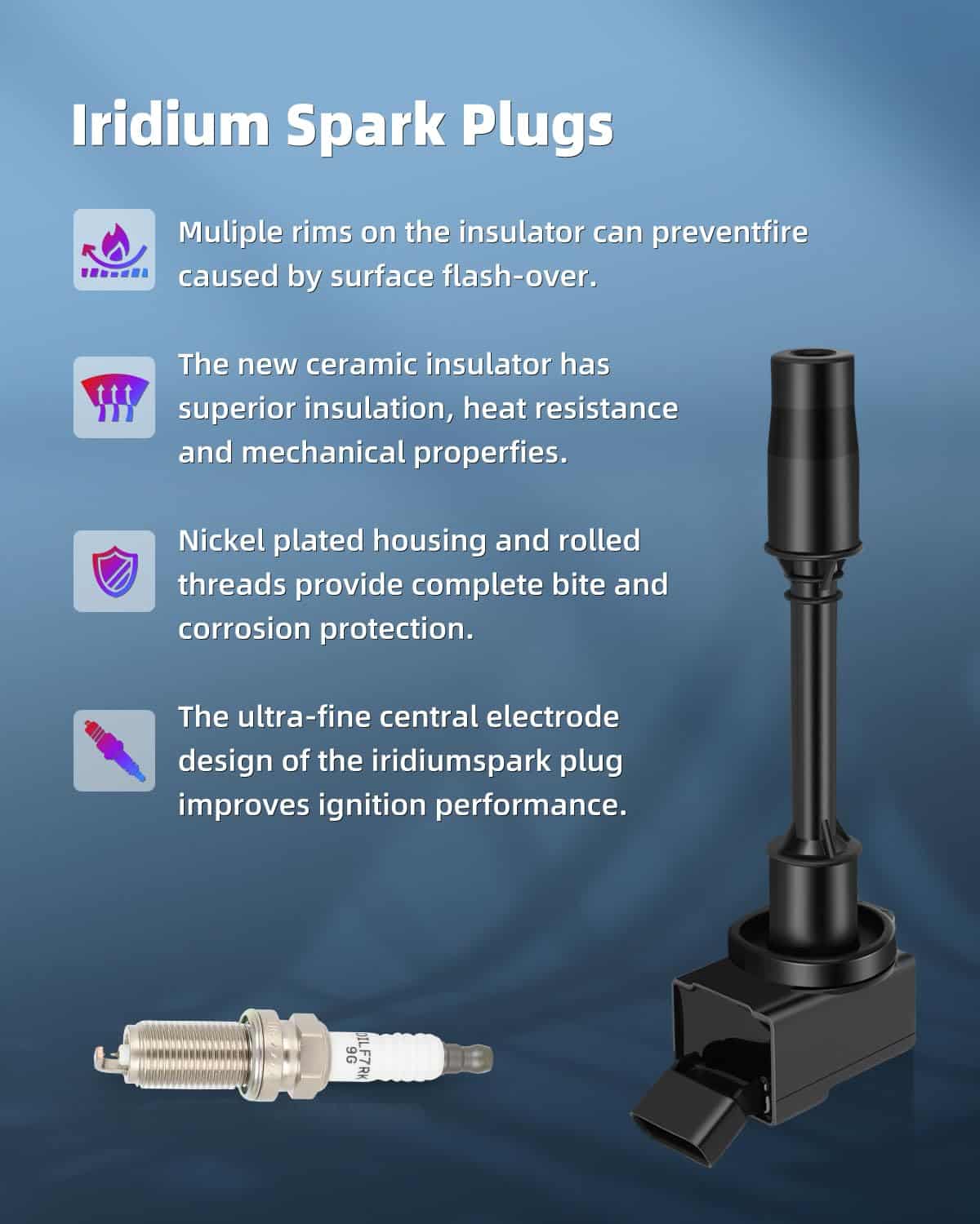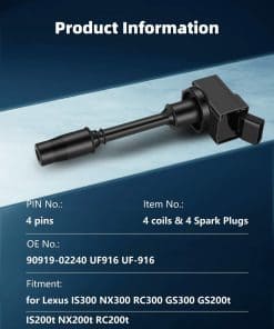 4. Bobina y Bujía Mejoradas: ¡15% más de energía que las bobinas OEM y mejora el rendimiento del motor! Las bobinas de encendido proporcionan la chispa para su motor. Con el tiempo, su bobina de encendido y bujías de fábrica fallarán, lo que dará lugar a un bajo rendimiento de combustible, fallo de encendido, vacilación, luz de check engine (CEL) y luces de advertencia VSC, ¡por favor reemplace las bobinas y bujías juntas para proporcionar un rendimiento superior en el arranque en frío y un motor más suave en funcionamiento!
