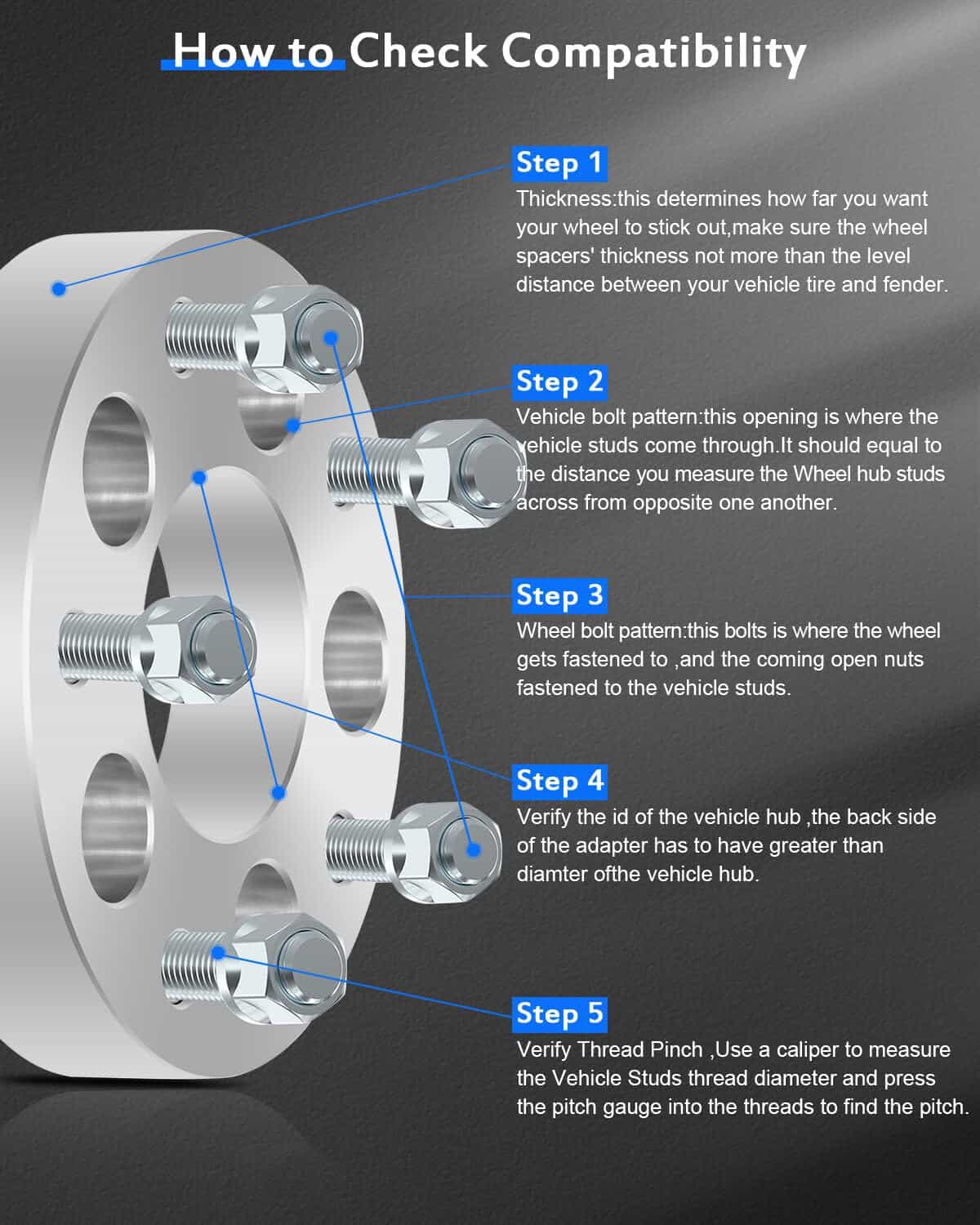 4. BENEFICIOS PARA EL COCHE–Nuestros adaptadores de rueda de 1.25″ de 5×4.5 a 5×5 ensanchan ligeramente su vehículo, mejoran la tracción, la aceleración y las capacidades de manejo. Mayor flexibilidad, permitiendo la instalación de calibradores de frenos más grandes o kits de elevación sin comprometer el rendimiento.