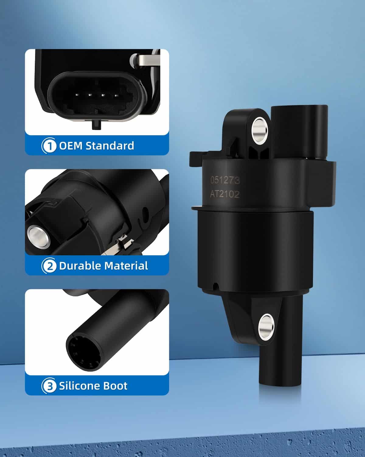 4. MATERIALES DE CALIDAD PREMIUM – Hechas de materiales de alta calidad, para mayor estabilidad y fiabilidad, superando el estándar OEM, ayuda a resolver problemas causados por bobinas defectuosas como temblor en ralentí, condiciones de fallo/arranque nulo y encendido de la luz del motor. Utilizamos el servicio integral de selección de materiales, producción e inspección de calidad para hacer que esta bobina sea más duradera y de larga durabilidad.