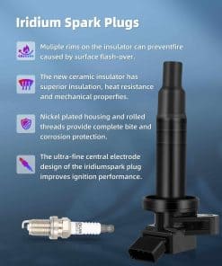 4. Bobina y Bujía Mejoradas : Mejora del 15% más de energía que las bobinas de OE y mejora el rendimiento del motor. Las bobinas de encendido proporcionan chispa para su motor. Con el tiempo, su bobina de encendido y bujías de fábrica fallarán, lo que llevará a un bajo rendimiento de combustible, fallos de encendido, hesitación, luz de chequeo del motor (CEL) y luces de advertencia VSC, por favor reemplace sus bobinas y bujías juntas para proporcionar un rendimiento superior en el arranque en frío y un motor más suave.