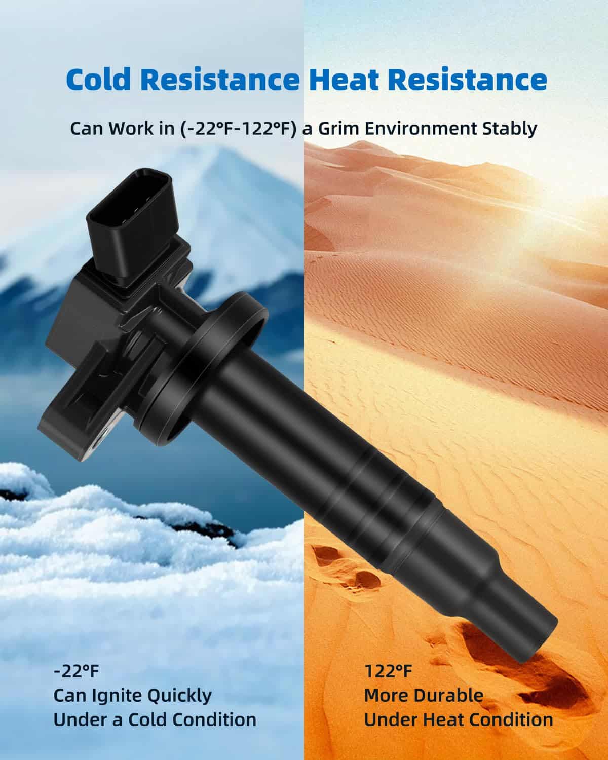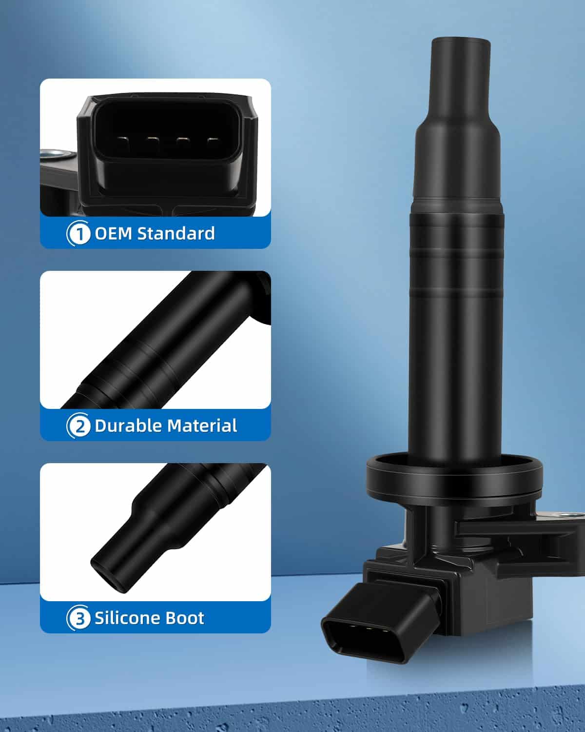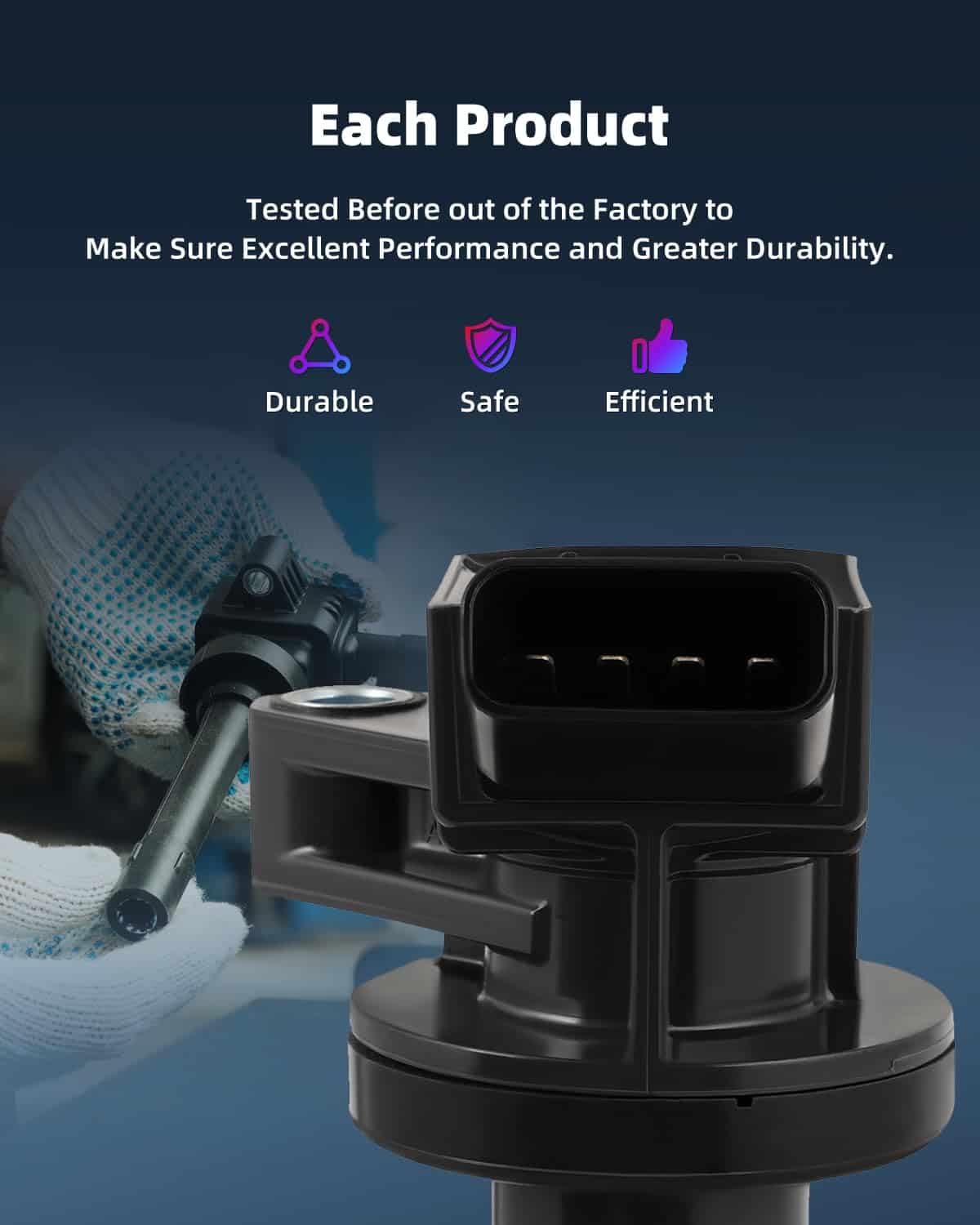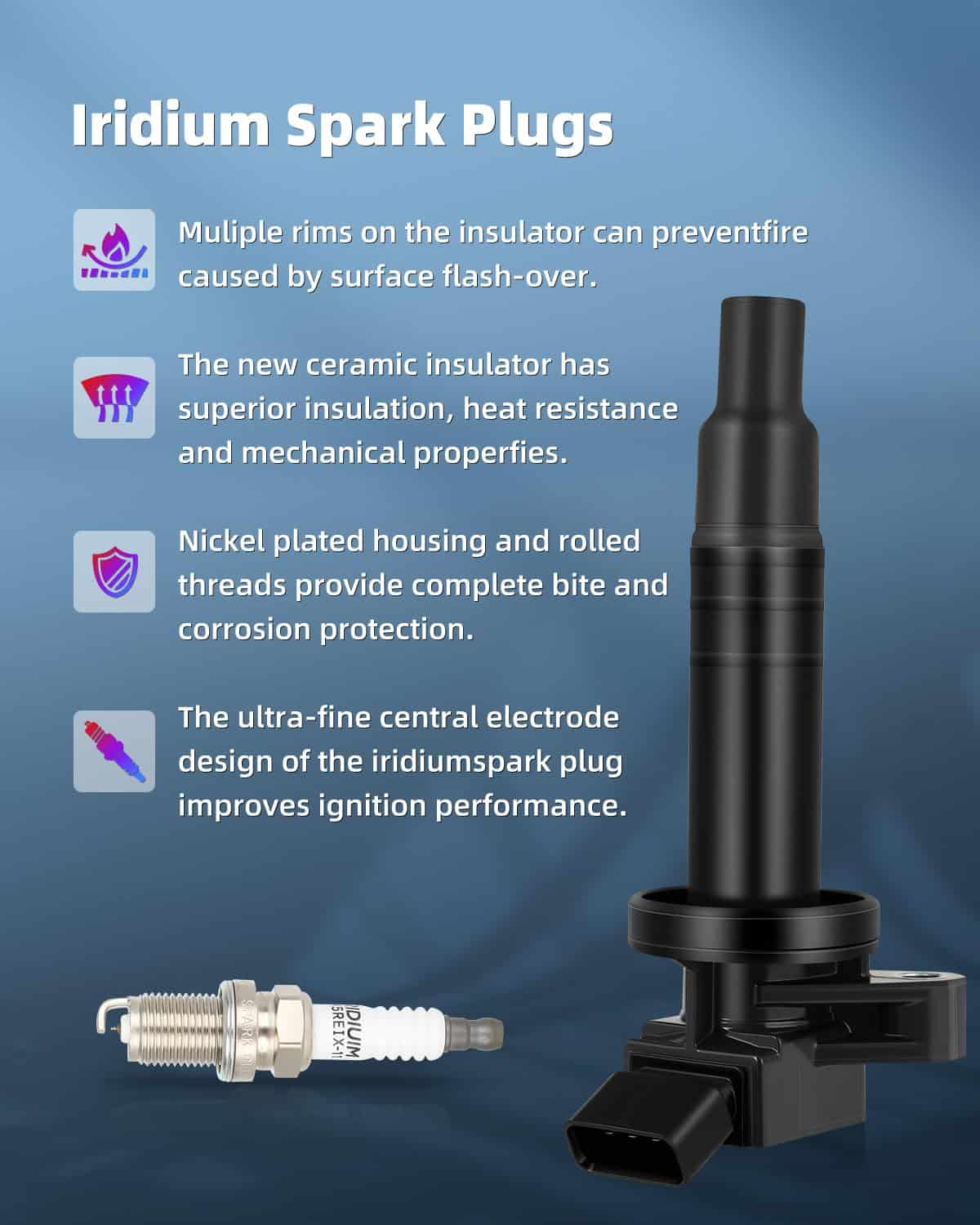 3. Calidad Premium y Larga Vida Útil : Las bobinas y bujías de encendido de ECCPP están construidas para cumplir o exceder las especificaciones de OE, mejorando la fiabilidad y el rendimiento. El alambre de cobre altamente conductor y la resina epoxi de alto rendimiento dieléctrico, conexiones precisas resistentes a la corrosión garantizan una excelente conectividad eléctrica y una larga vida útil.