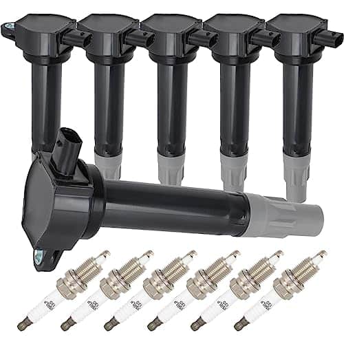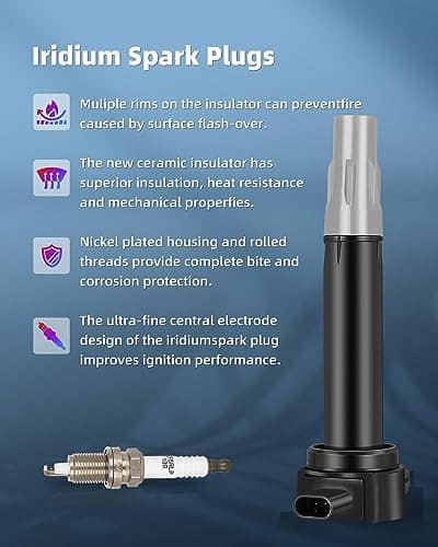 4. Bobina y Bujía Mejoradas: Actualice un 15% más de energía que las bobinas OE e mejore el rendimiento del motor. Las bobinas de encendido proporcionan chispa para su motor. Con el tiempo, su bobina de encendido y bujías de fábrica fallarán, lo que llevará a un bajo rendimiento de combustible, fallo de encendido, vacilación, luz de check engine (CEL) e indicadores de luces de advertencia VSC, por favor, reemplace sus bobinas y bujías juntas para proporcionar un rendimiento superior en el arranque en frío y un motor más suave.