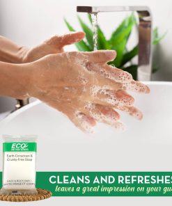 ECO amenities Bar Soap Bulk es la solución ideal para aquellos en la industria hotelera, de alquileres vacacionales o Airbnb que desean proporcionar a sus huéspedes artículos de aseo de alta calidad. Este paquete a granel incluye 200 barras de jabón individualmente envueltas, cada una de 1.0 oz, lo que las hace perfectas para llevar en viajes o compartir. El empaque sostenible biodegradable utilizado para envolver las barras de jabón garantiza que sean respetuosas con el medio ambiente y no dañen la vida silvestre. Además, las barras de jabón son libres de crueldad, ya que nunca se prueban en animales y están formuladas con ingredientes naturales. La fragancia refrescante de té verde revitaliza la piel mientras es suave en todo tipo de piel. Asegúrese de ofrecer a sus huéspedes lo mejor con ECO amenities Bar Soap Bulk.