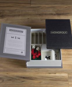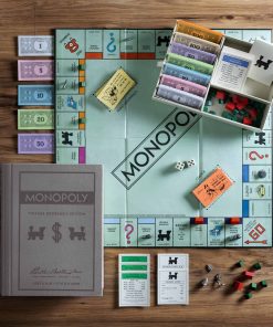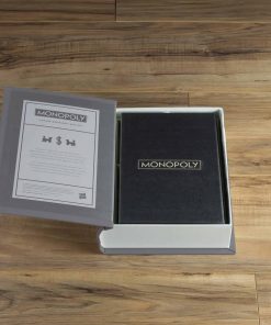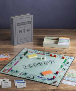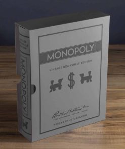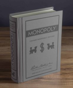 Esta edición vintage de Monopoly envuelta en lino es la combinación perfecta de forma, función y diversión. El elegante libro envuelto en lino luce absolutamente hermoso en exhibición en tu estantería de libros. Abre el libro y revelará componentes premium inspirados en la edición original almacenados ordenadamente en su interior. Licenciado por Hasbro. Diseñado en Massachusetts por WS Game Company.