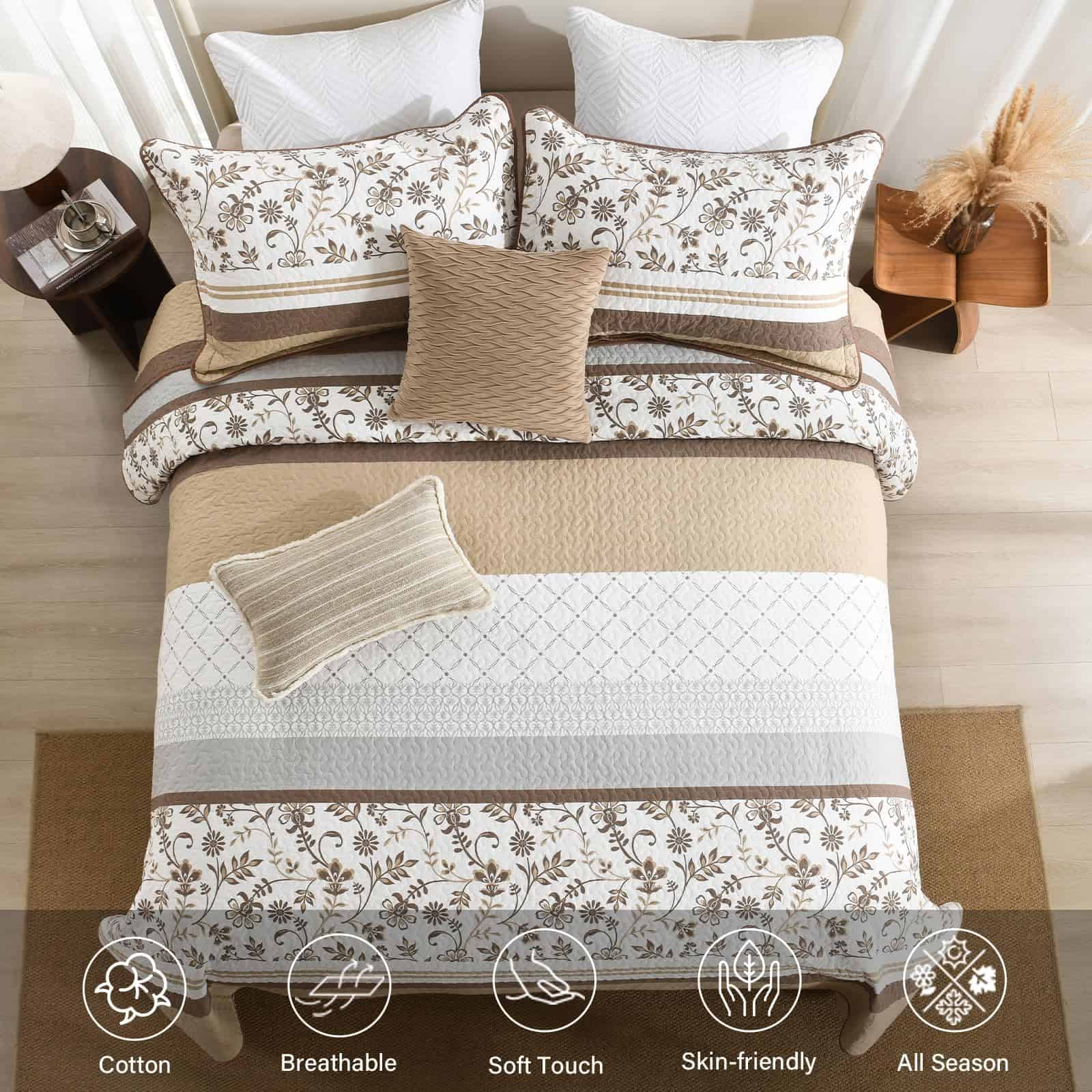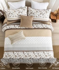 Este juego de edredón de Quilta está hecho de algodón 100% natural de alta calidad, tanto en las fundas como en los rellenos. Los juegos de edredón de algodón le darán la frescura y transpirabilidad que necesitas para un sueño reparador. Con un diseño bohemio de rayas, este juego de edredón de estilo granja es versátil y práctico para varias ocasiones. Puede utilizarse como colcha, edredón, cubrecama, funda de sofá, protector de cama o manta. Además, es adecuado para todas las estaciones, ofreciendo el equilibrio perfecto entre calidez y ligereza. Este juego de cama incluye un edredón de tamaño queen y dos fundas de almohada, lo que te proporcionará la comodidad que necesitas en tu dormitorio. Fácil de lavar a máquina y extremadamente duradero, este juego de edredón será la elección perfecta para tu hogar. Aprovecha la calidad y confort de este juego de edredón y embellece tu dormitorio con este elegante y funcional juego de cama.
