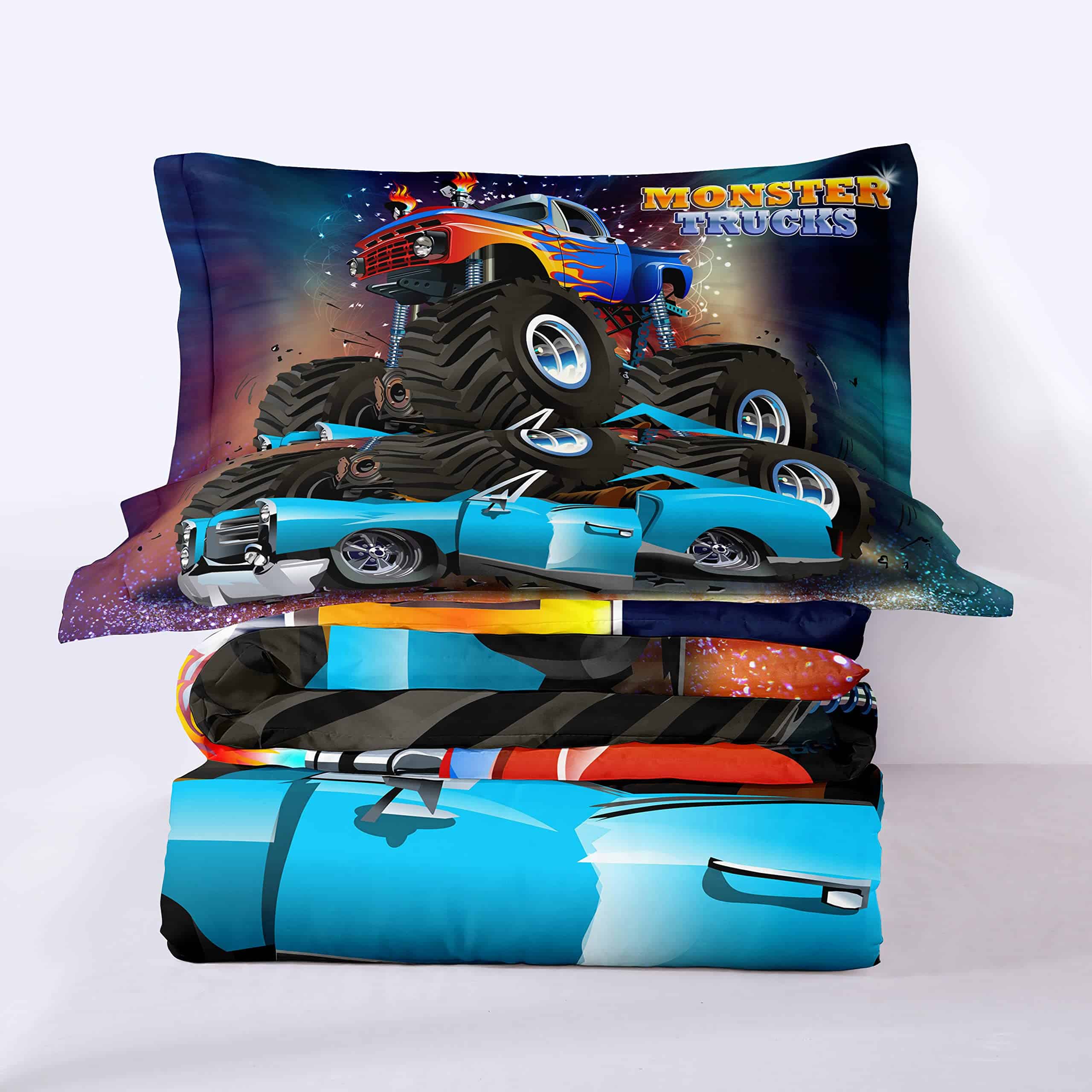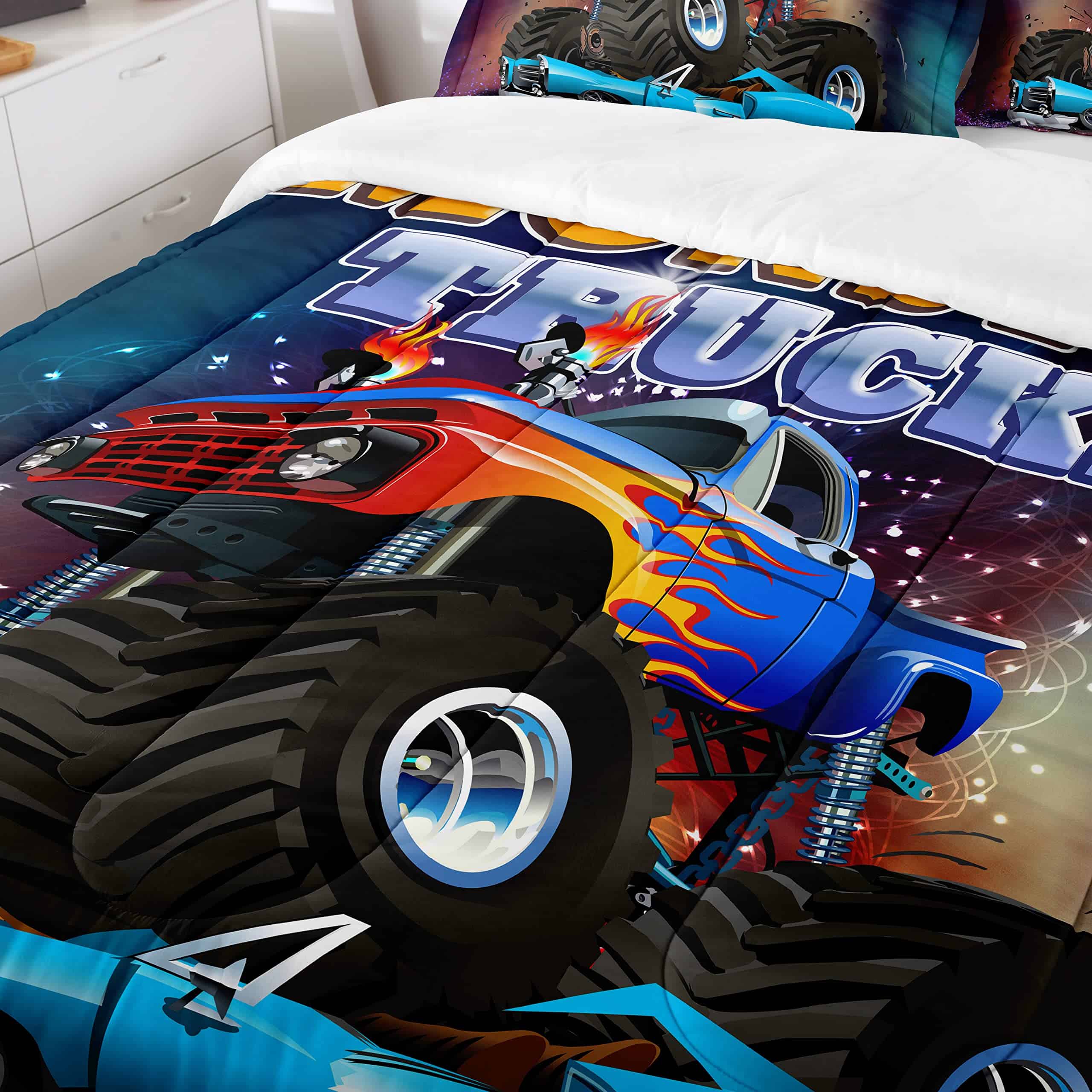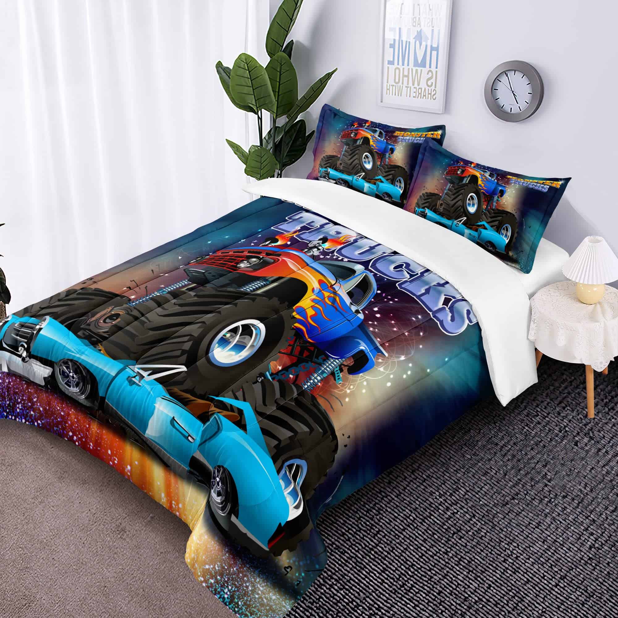 Es hora de acostarse. Ahora cierra los ojos y sube a este conjunto de edredón de camioneta de dibujos animados, y deja que te lleve en un viaje para explorar el vasto mundo inexplorado.