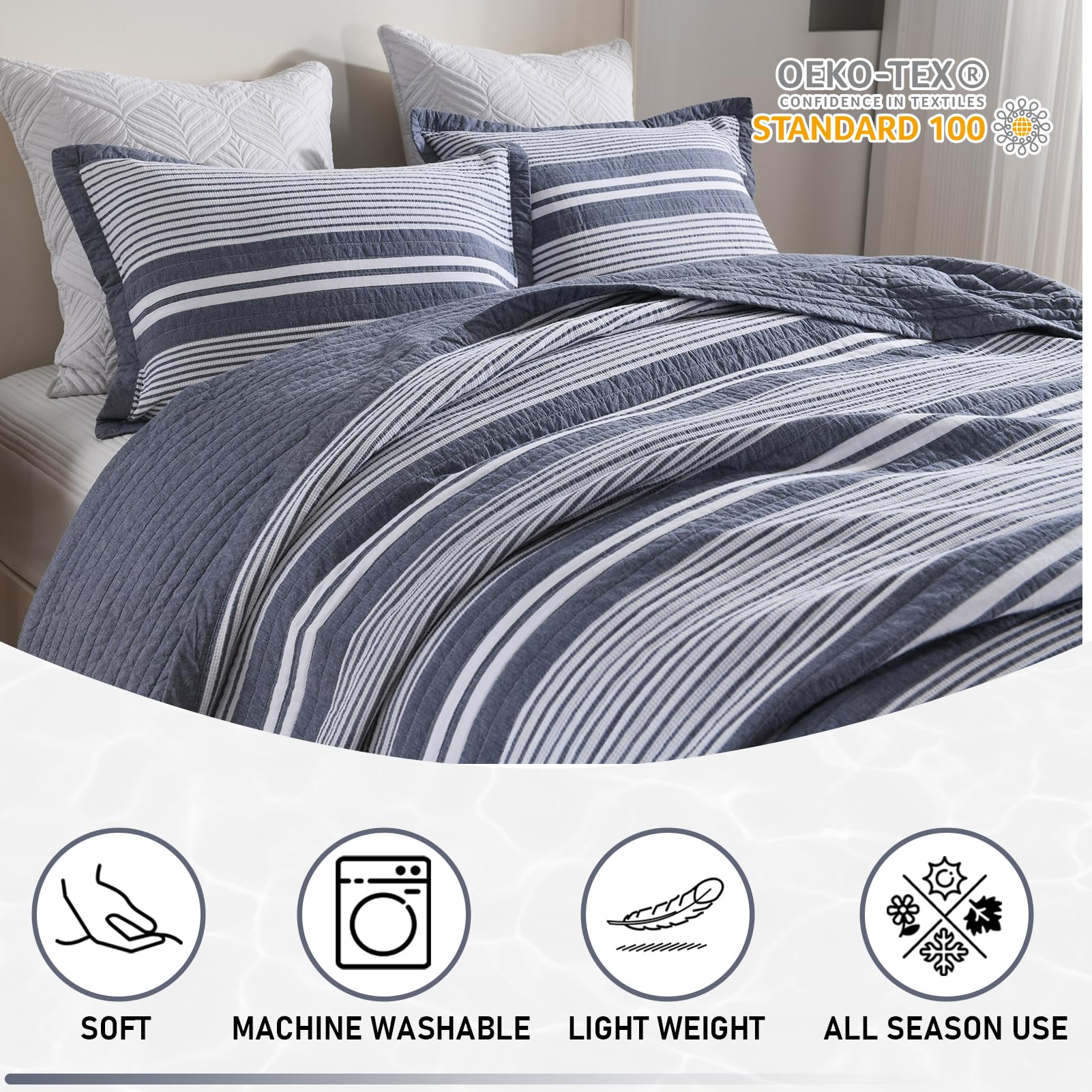 Edredón a Rayas King Size KALOOLA – Juego de Ropa de Cama