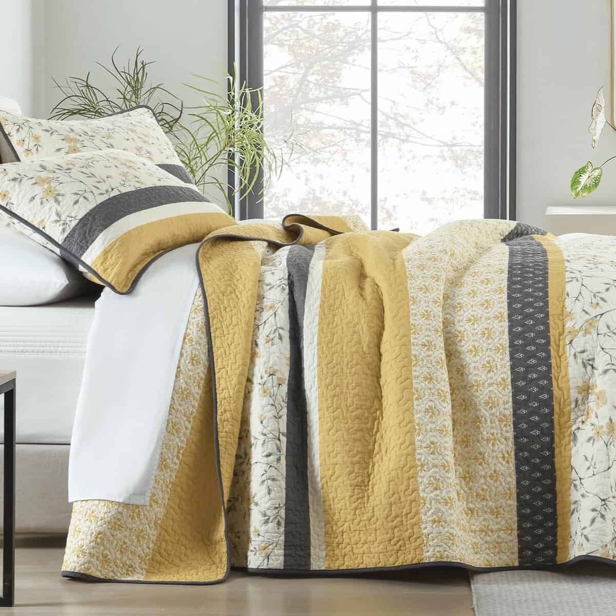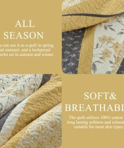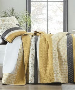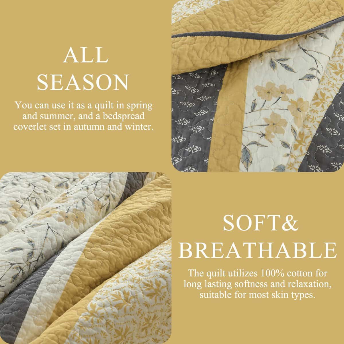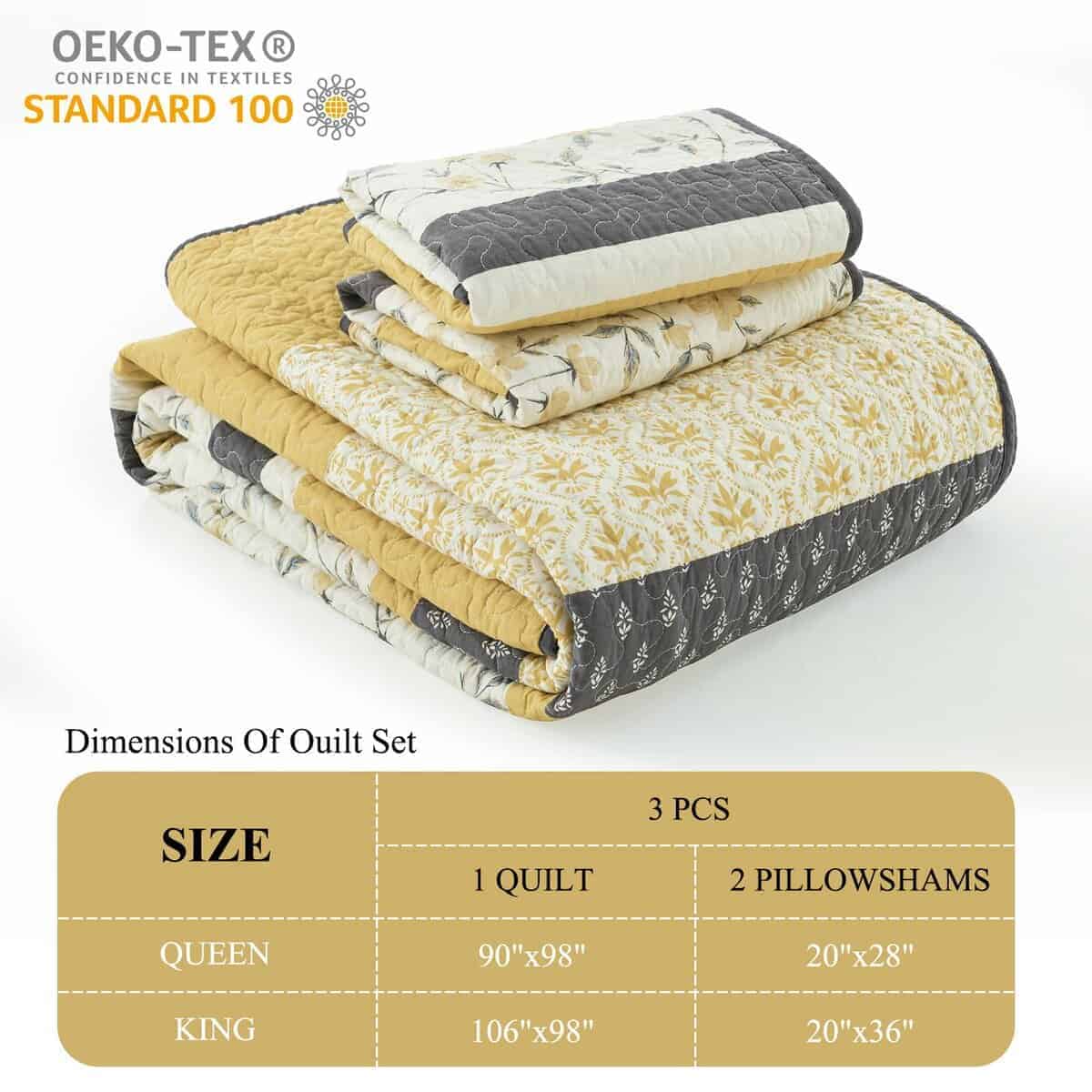 Este juego de edredón tamaño Queen de DDUOXIN es la combinación perfecta de confort, durabilidad y estilo elegante. Fabricado con 100% algodón de alta calidad, es suave al tacto, ligero y cómodo para todas las estaciones. La cuidadosa costura experta garantiza su durabilidad excepcional, para que puedas disfrutar de la belleza y comodidad de este edredón durante muchos años. El diseño elegante del edredón a rayas en amarillo dorado, gris y blanco traerá la belleza de la naturaleza a tu dormitorio. Los patrones intrincados son visualmente impresionantes y se complementan con cualquier tipo de decoración. El juego de edredón de 3 piezas incluye un edredón reversible de tamaño queen (90 x 98 pulgadas) y 2 fundas de almohada (20 x 28 pulgadas), lo que lo convierte en un regalo práctico y reflexivo para ti mismo o para alguien especial. Este edredón se puede utilizar durante todo el año, ya que es ligero para mantenerse fresco en las noches de verano y ofrece una capa extra de confort durante las noches frías de invierno. Además, es fácil de cuidar, ya que se puede lavar a máquina por separado en agua fría, secar a baja temperatura y no necesita ser blanqueado. Añade este hermoso juego de edredón queen a tu hogar para disfrutar de calidez y comodidad cuando lo necesites.