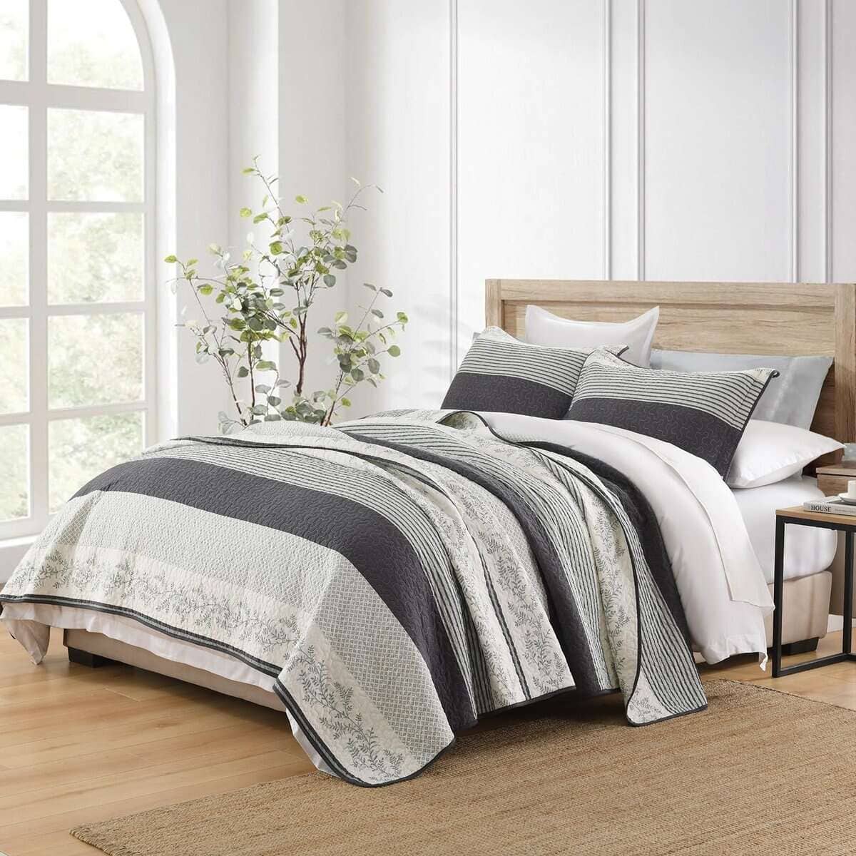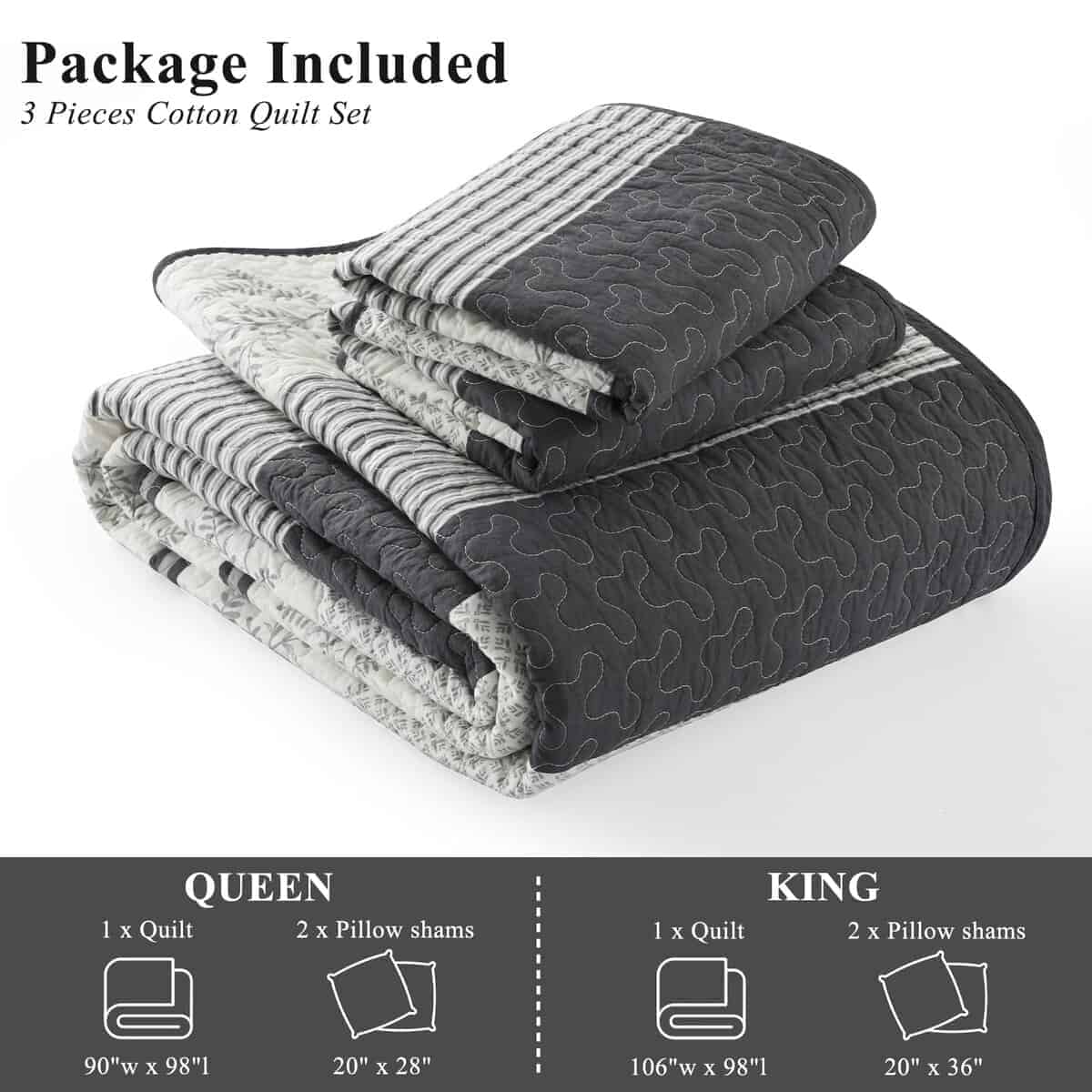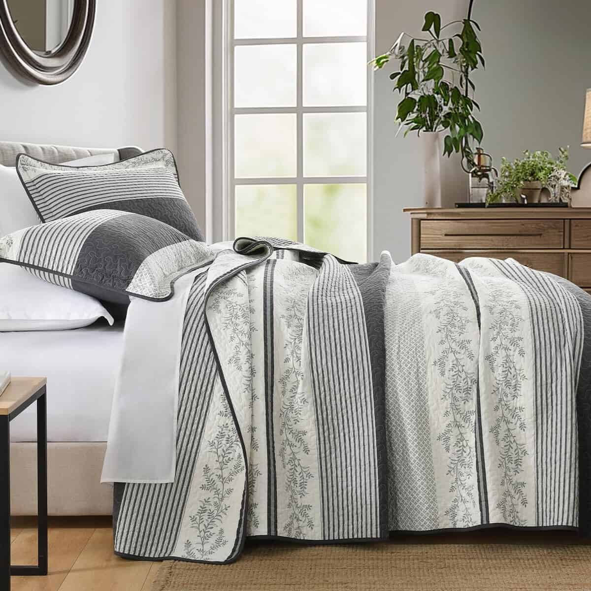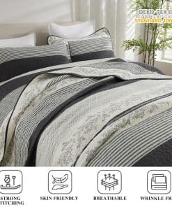 Edredón a rayas tamaño Queen de SOElinens – Juego de