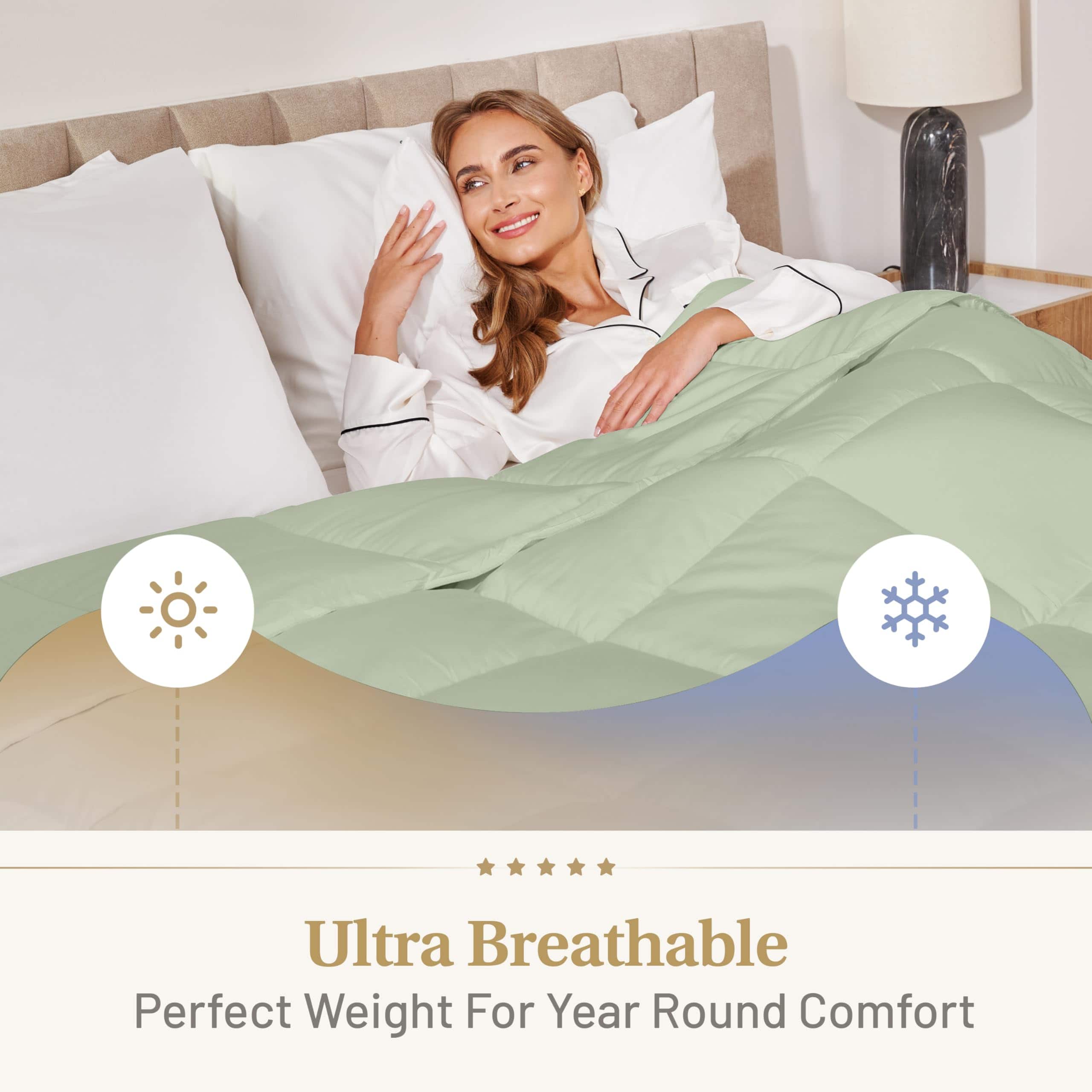 Experimenta la mejor noche de sueño con el Edredón Alternativo de Lujo para Todas las Estaciones de Lavish Comforts. Este edredón extra mullido te hará sentir como si estuvieras durmiendo en una nube celestial.