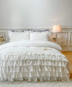 Edredón Blanco con Volantes de Cascada para Cama Queen,