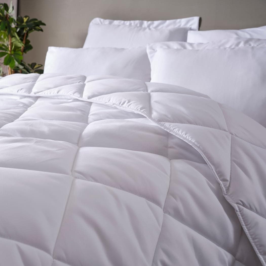 Este edredón hipoalergénico es la alternativa perfecta al plumón, ofreciendo la misma calidez y comodidad acogedora sin las alergias asociadas con el plumón tradicional. Ideal para todas las estaciones, nuestro edredón es perfecto para proporcionar una comodidad excepcional durante todo el año. Su transpirabilidad mejora tu experiencia de sueño. Fabricado en Turquía. Fácil Instrucciones de Cuidado: Nuestro edredón blanco se puede lavar con colores similares en un ciclo suave en agua fría. Es lo suficientemente duradero como para resistir lavados regulares, convirtiéndolo en el edredón perfecto para la cama.