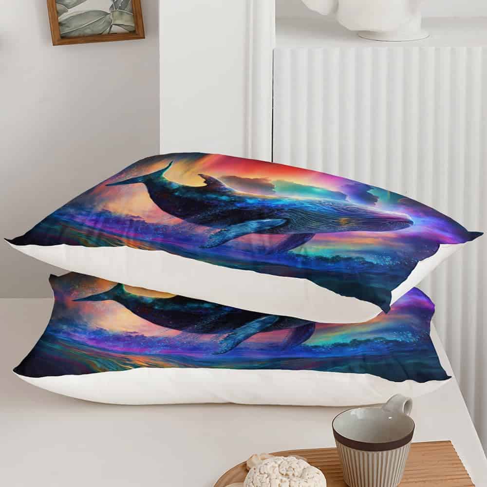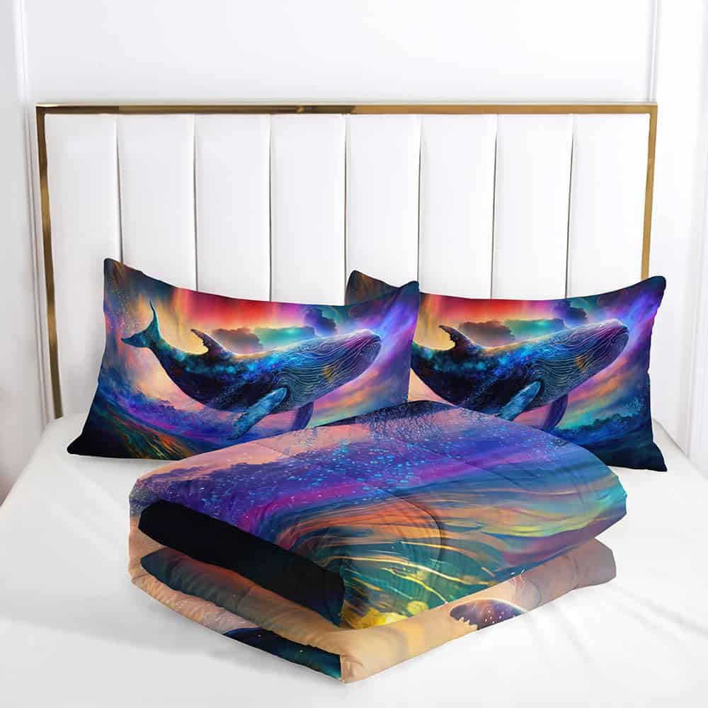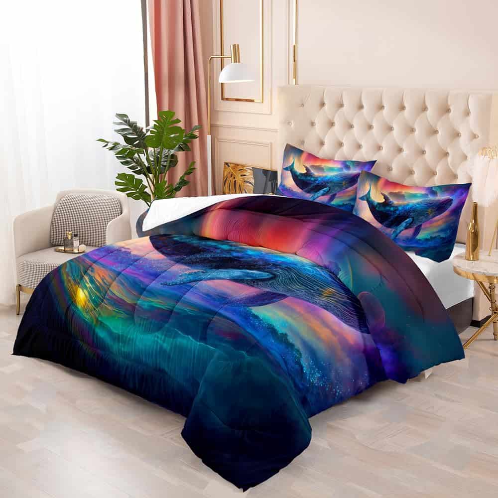 Edredón con Estampado de Ballena Oceánica, 3 Piezas,