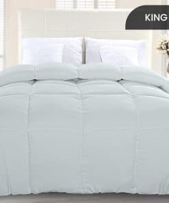 Edredón Confort Utopia Bedding, Edredón Acolchado con Pestañas en las Esquinas, Acolchado a Cuadros Relleno de Alternativa Abajo Tamaño King (Gris Claro) es una pieza imprescindible para tu dormitorio. Ya sea que lo uses solo o como relleno de un edredón, este edredón ofrece una sensación suave y acogedora. Con una elegante costura en cuadros y bordes ribeteados, este edredón presenta un diseño atractivo y funcional. Su relleno de fibra siliconada mantiene el edredón en su lugar y previene que el relleno se desplace. Las pestañas en las esquinas hacen que sea fácil de colocar en cualquier funda nórdica. Además, este edredón es lavable a máquina para mayor comodidad y conveniencia. Disfruta de una noche de sueño cálido y confortable con el Edredón Confort Utopia Bedding.