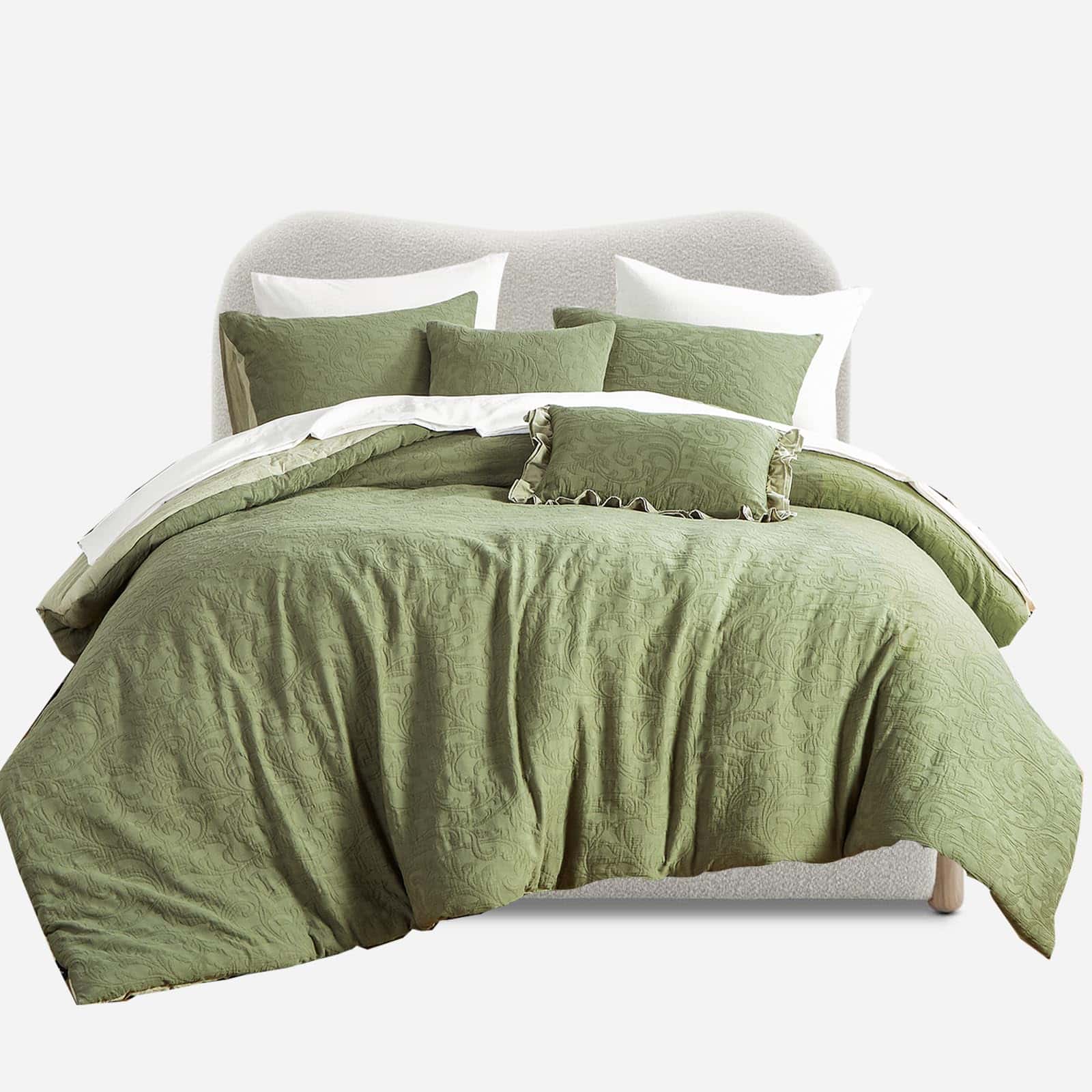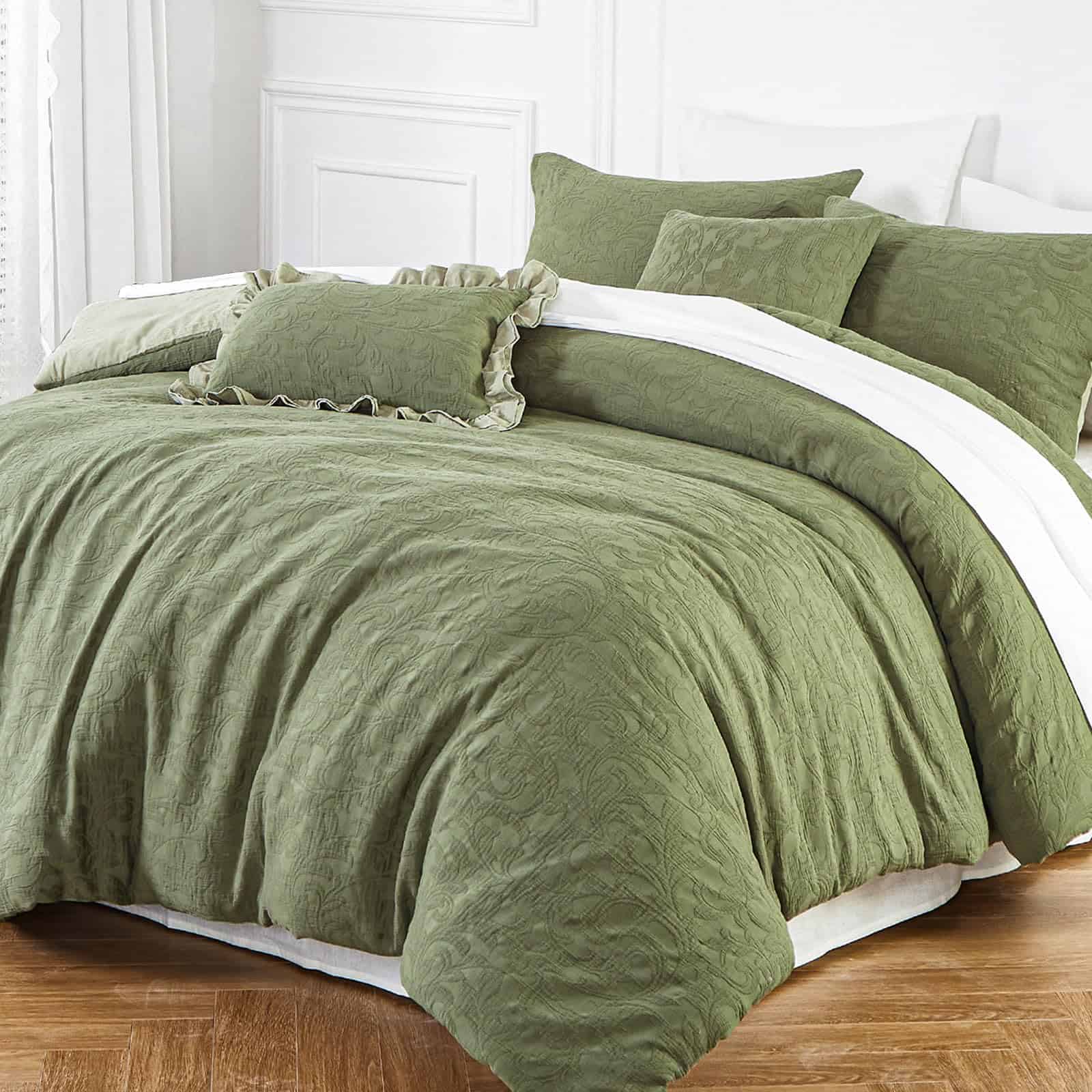 Este edredón de algodón suave para cama Queen en verde bosque es la elección perfecta para disfrutar de noches de sueño reconfortantes. Está cubierto por tela de algodón de alta calidad y relleno con microfibra alternativa de plumón para una sensación de lujo. El diseño elegante y nostálgico añade un toque vintage a tu dormitorio, mientras que el proceso de prelavado garantiza una textura suave y cómoda. El juego de edredón incluye un edredón Queen de 90″x94″ y dos fundas de almohada de 20″x26″ para una coordinación perfecta. Además, este juego de edredón es duradero y fácil de cuidar, resistiendo los rigores del uso diario. Empaquetado en bolsas al vacío, se recomienda lavar en frío por separado y secar a fuego lento sin lejía. Sorprende a tus seres queridos con este exquisito edredón verde bosque, perfecto para regalar en cualquier ocasión especial.