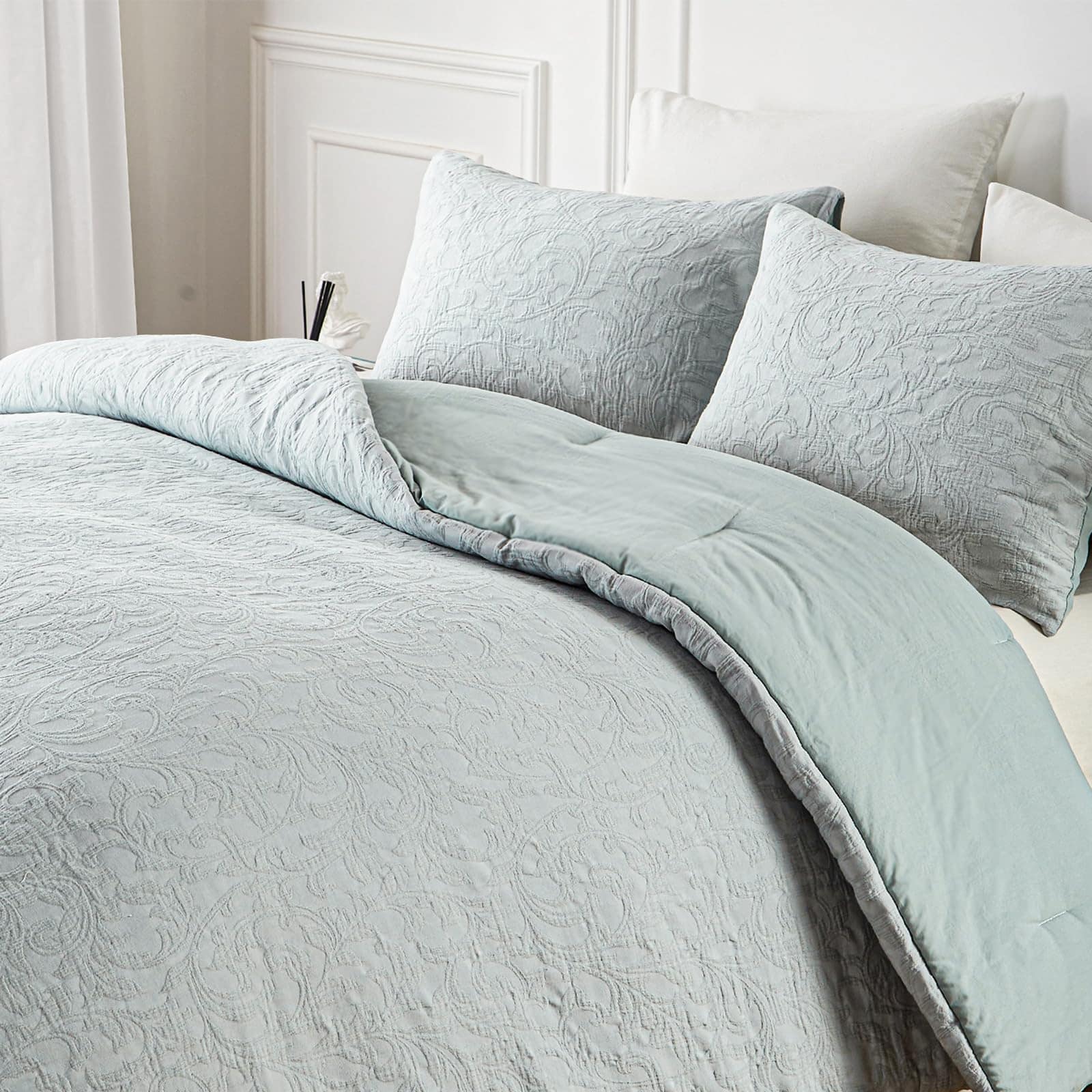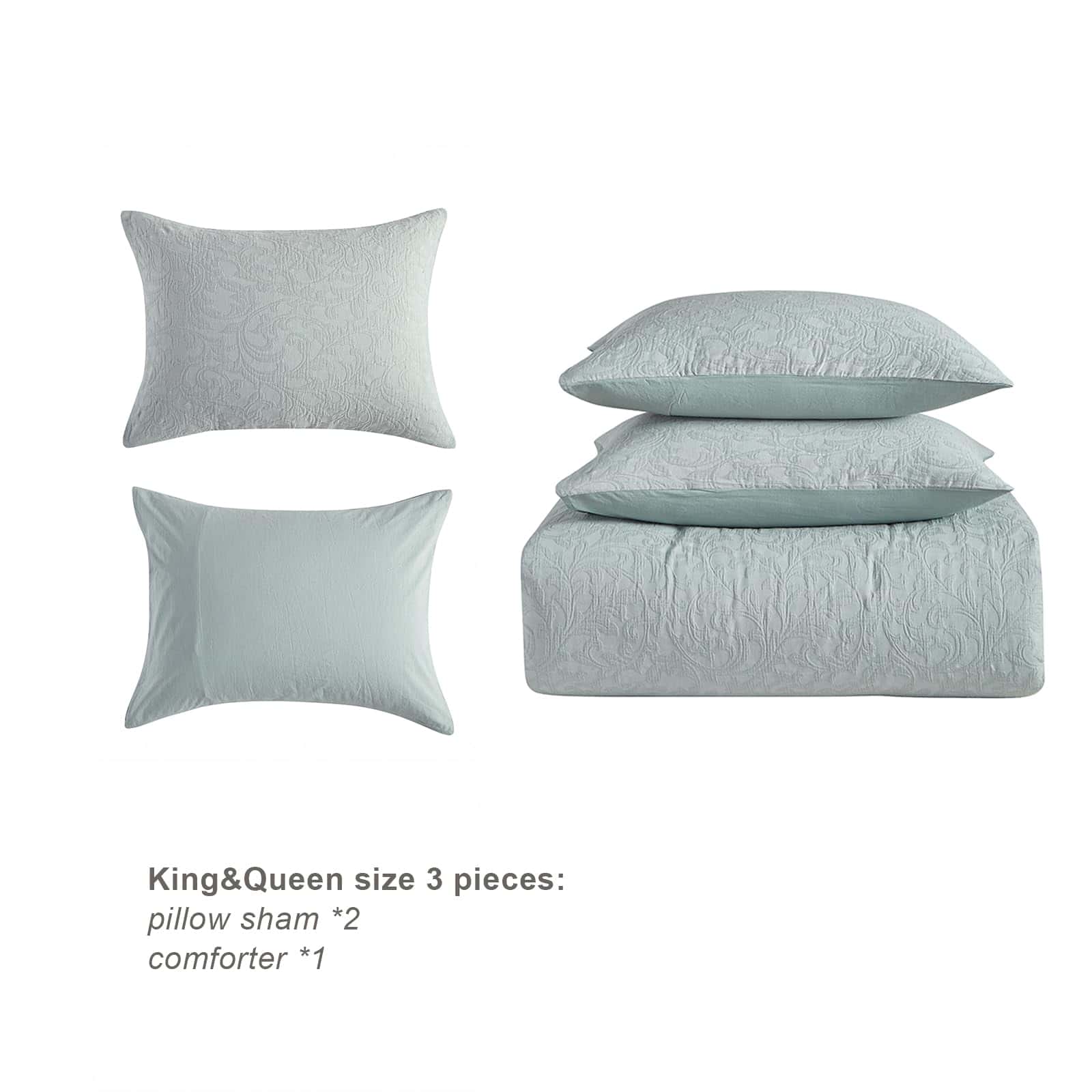 1. Material de alta calidad: Este edredón de algodón está cubierto por una tela 100% algodón y relleno con material de microfibra alternativa al plumón de 250 gsm. Nuestro edredón queen jacquard asegura un suave roce contra tu piel, prometiendo noches de sueño ininterrumpido. Y todo el material pasó la certificación OEKO-TEX 100. 2. Pre lavado y diseño elegante: Esta ropa de cama estilo farmhouse ha sido prelavada. Este edredón de algodón tamaño queen agrega algo de nostalgia y calidad vintage a tu dormitorio. Fueron preencogidos en el proceso de prelavado y tienden a tener un tacto más suave. 3. UNA BOLSA CONTIENE: El juego de edredones y juegos incluye 1 edredón 90″x94″ y 2 fundas de almohada 20″x26″. 4. Durabilidad y cuidado fácil: nuestro juego de ropa de cama soporta la prueba del tiempo. El edredón de cama queen estaba empacado en bolsas al vacío. Por favor abra o lave y seque antes de usarlo. Por favor lávelo en frío por separado. No use quitamanchas, ciclo suave y por separado con otros colores. No use lejía. Secar en secadora a fuego lento. 5. Exquisita elección de regalo: ¿Buscas un regalo reflexivo y práctico? Este juego de ropa de cama azul sería una elección adecuada para regalos de bienvenida, bodas, ya sea para el Día de la Madre, San Valentín, Navidad o cualquier ocasión especial que merezca el regalo de la comodidad. El juego de edredón azul queen puede redecorar tu dormitorio y habitación de invitados, también es un gran regalo sorpresa para días festivos y cumpleaños para tus familias, amigos, mujeres, hombres, niñas, niños y adolescentes.