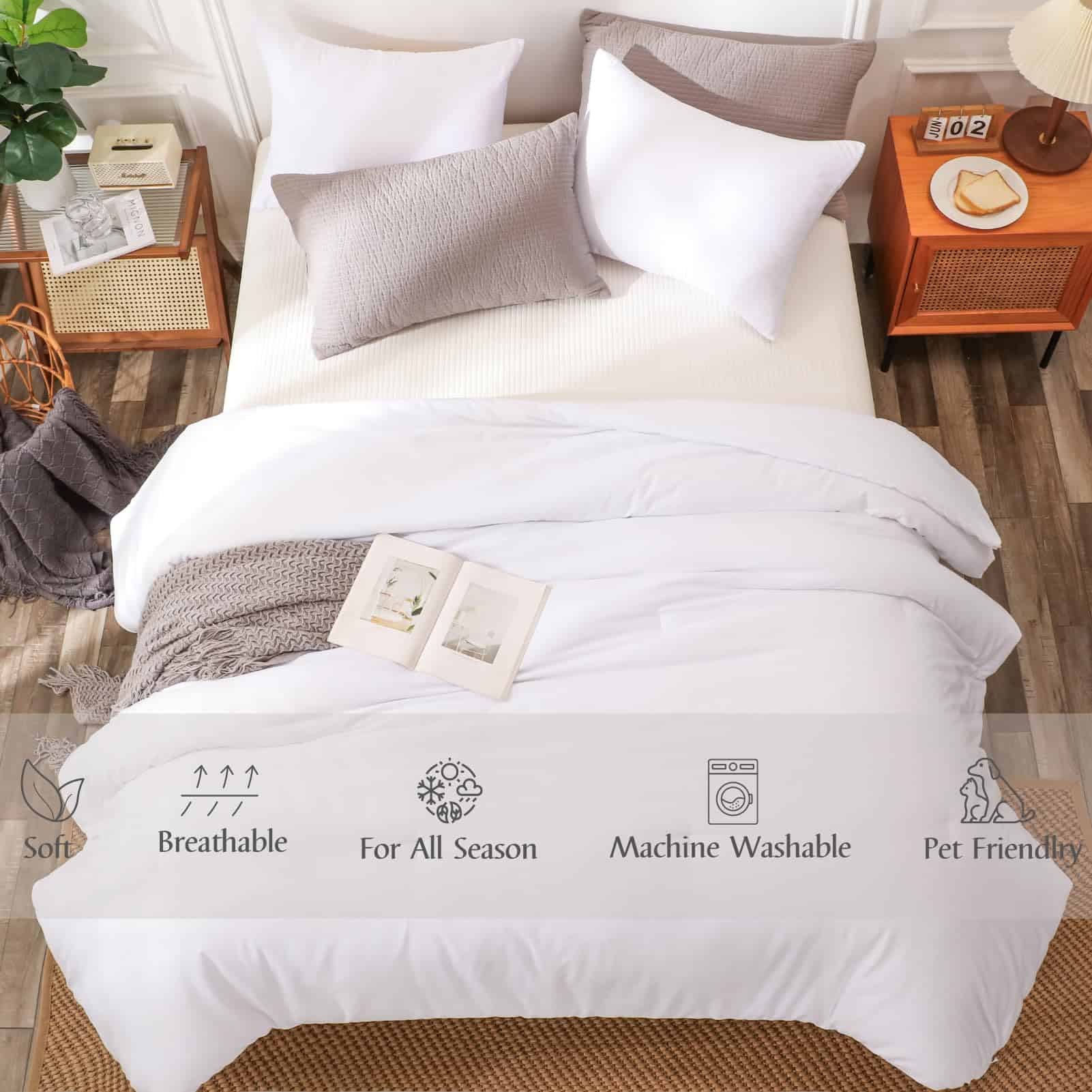 Este edredón de comforter para cama tamaño queen en color blanco está diseñado para brindar comodidad y calidez. Con un relleno no migratorio, este set de comforter blanco garantiza una noche de descanso placentera. Añade un toque de elegancia a tu dormitorio con este edredón de comforter de alta calidad.