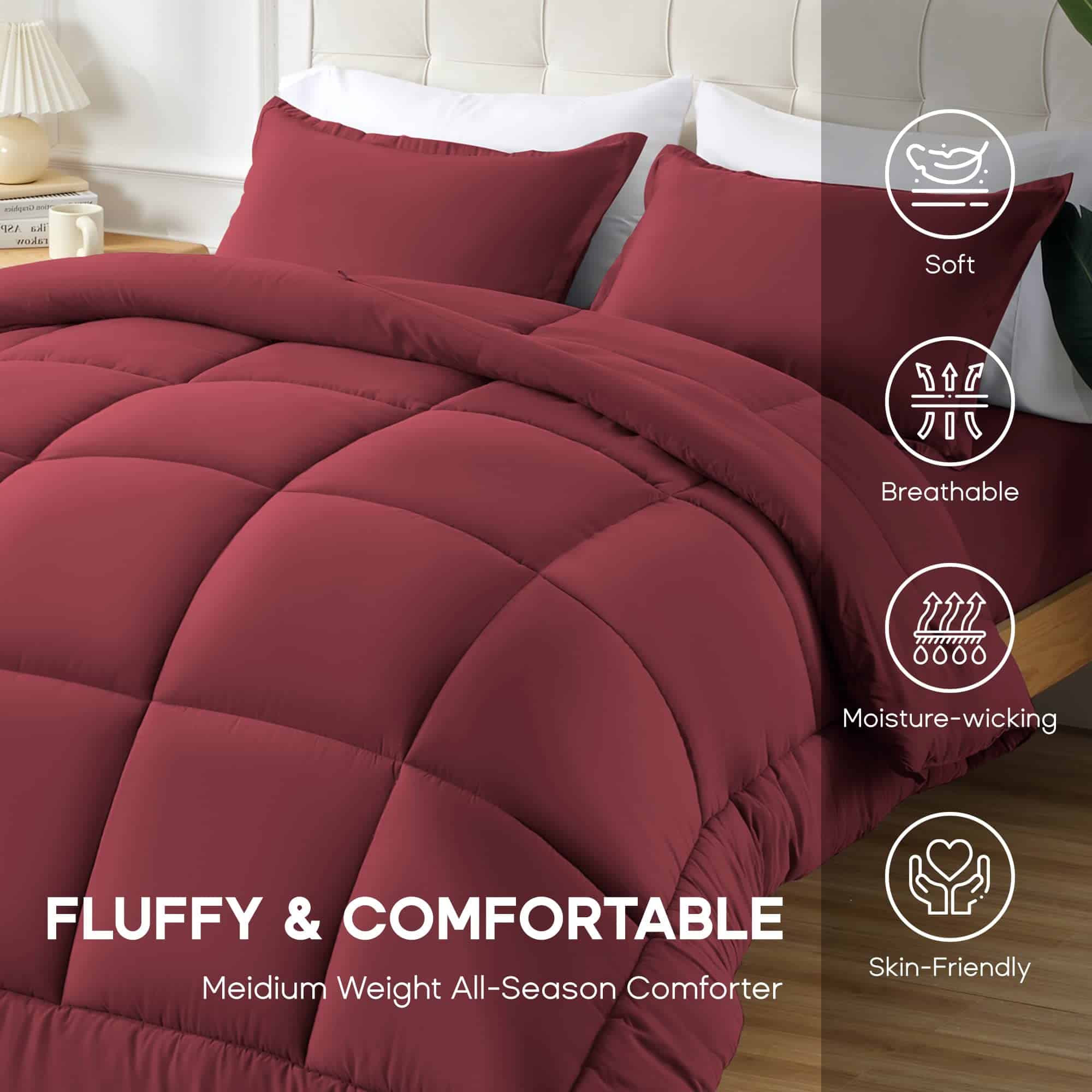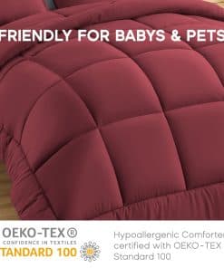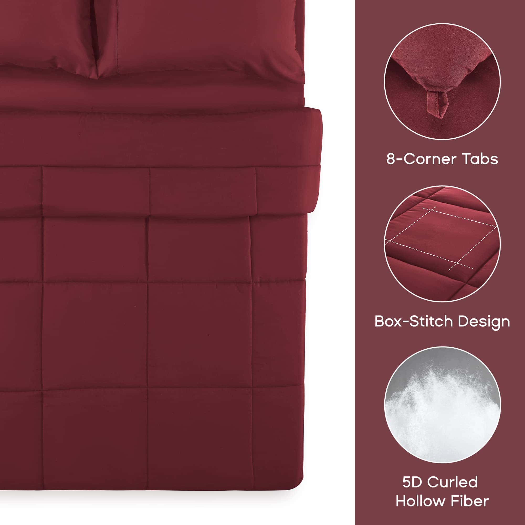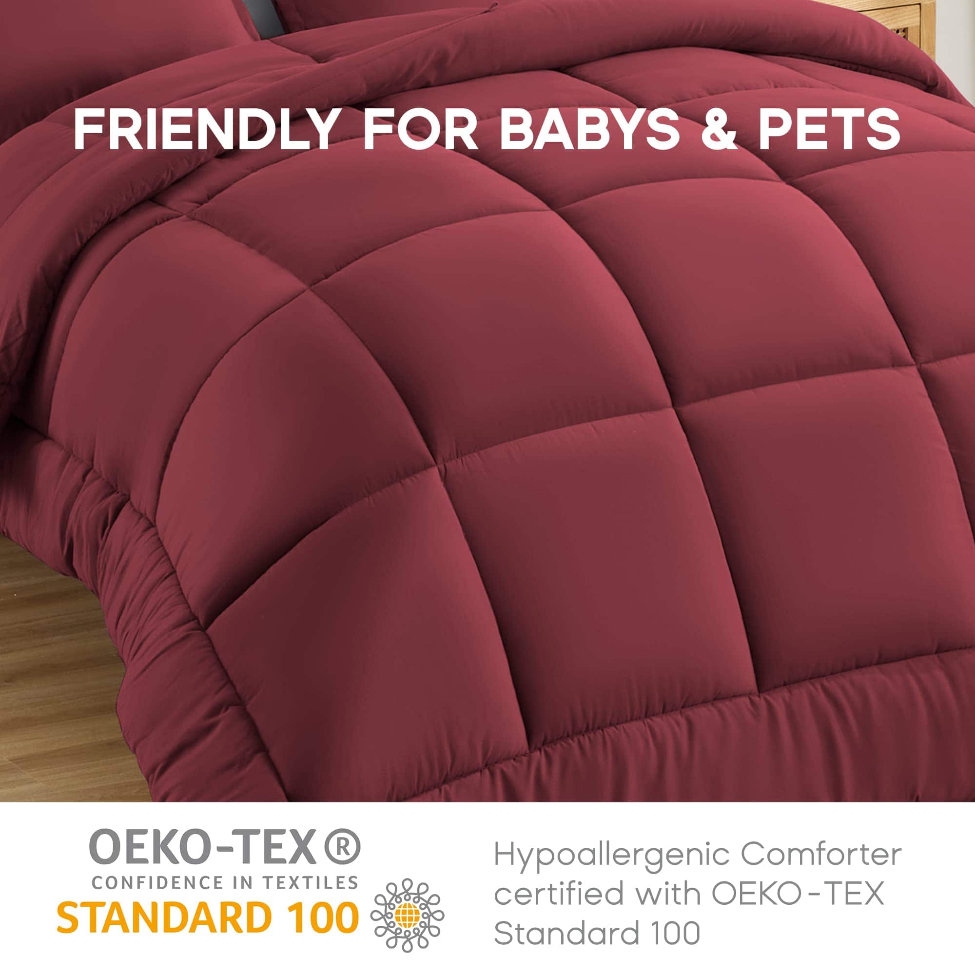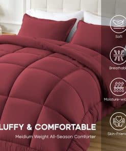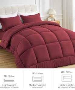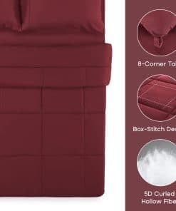 3. DISEÑO ELEGANTE Y AJUSTADO: Color burdeos clásico y pespunte en forma de cuadros, este edredón proporciona una decoración elegante para tu habitación. El diseño de pespunte en forma de cuadros mantiene el relleno alternativo en su lugar. Las 8 pestañas de esquina son más estables que el diseño tradicional, combinándose fácilmente con tu cubierta de edredón. También puede ser utilizado solo. Una elección de regalo de gran valor para tu familia y amigos y para todo tipo de habitaciones.