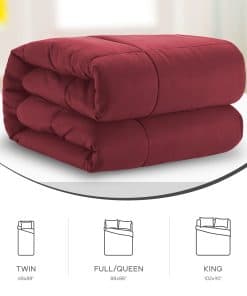 4. TAMAÑO Y FÁCIL CUIDADO: Individual/Individual xl: 64×88″, Completo: 82×86″, Tamaño Queen: 88×88″, Tamaño King: 104×88″. Lavar a máquina en agua fría, ciclo suave; secar en secadora o al aire, ciclo suave. No usar lejía, no planchar. También puedes colocarlo dentro de una cubierta de edredón y lavar la cubierta según sea necesario. Agitar regularmente y exponer al sol puede mantener tu edredón esponjoso durante años, como el día que lo compraste.