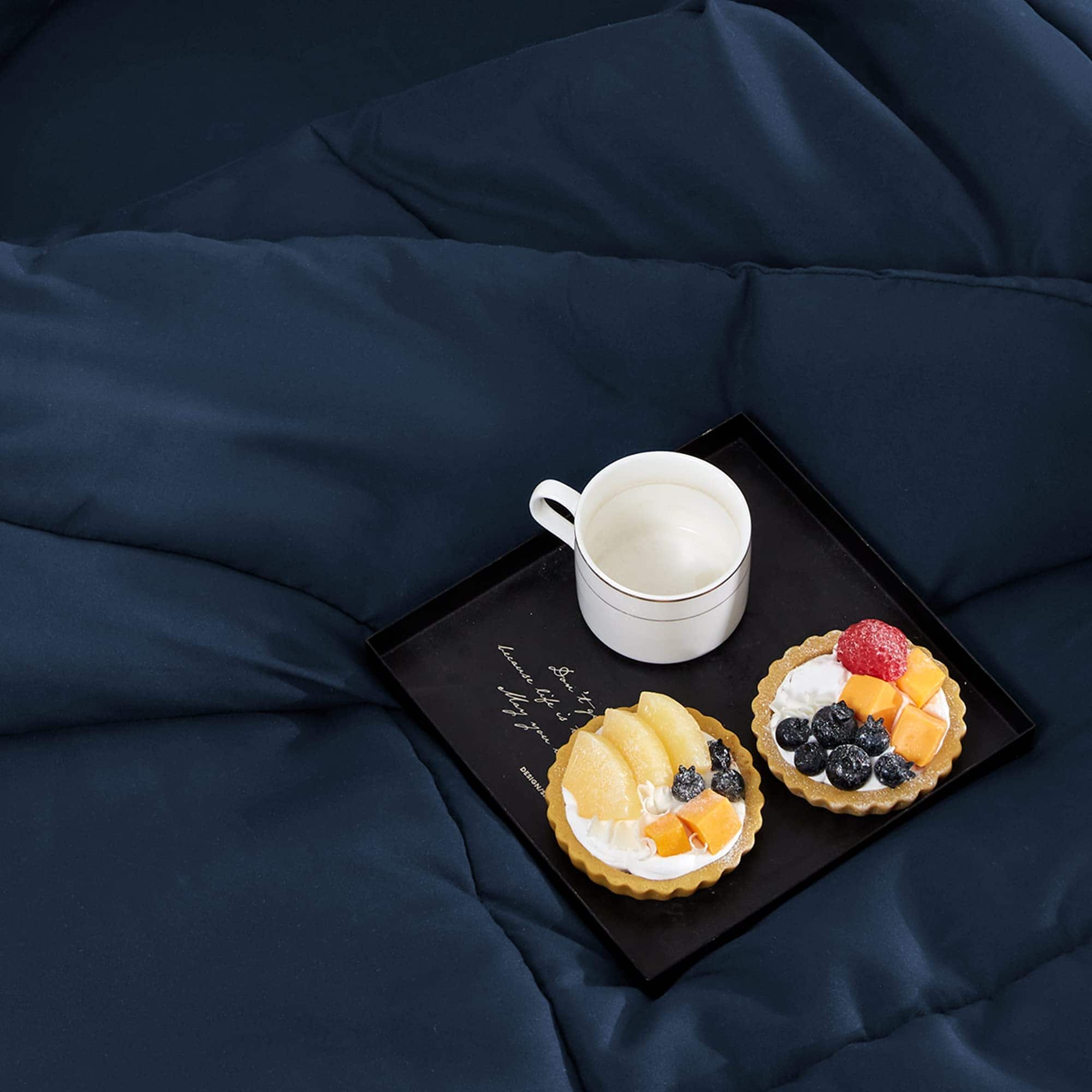 3. DISEÑO ELEGANTE Y BIEN AJUSTADO: Color negro clásico y costuras en caja, este edredón proporciona una decoración elegante para tu habitación. El diseño de costuras en caja evita que el relleno alternativo al plumón se desplace. Las 8 pestañas de esquina son más estables que el diseño tradicional, se adaptan fácilmente a tu cubierta de edredón. También se puede utilizar solo. Una elección de regalo de gran valor para tu familia y amigos y para todo tipo de habitaciones.
