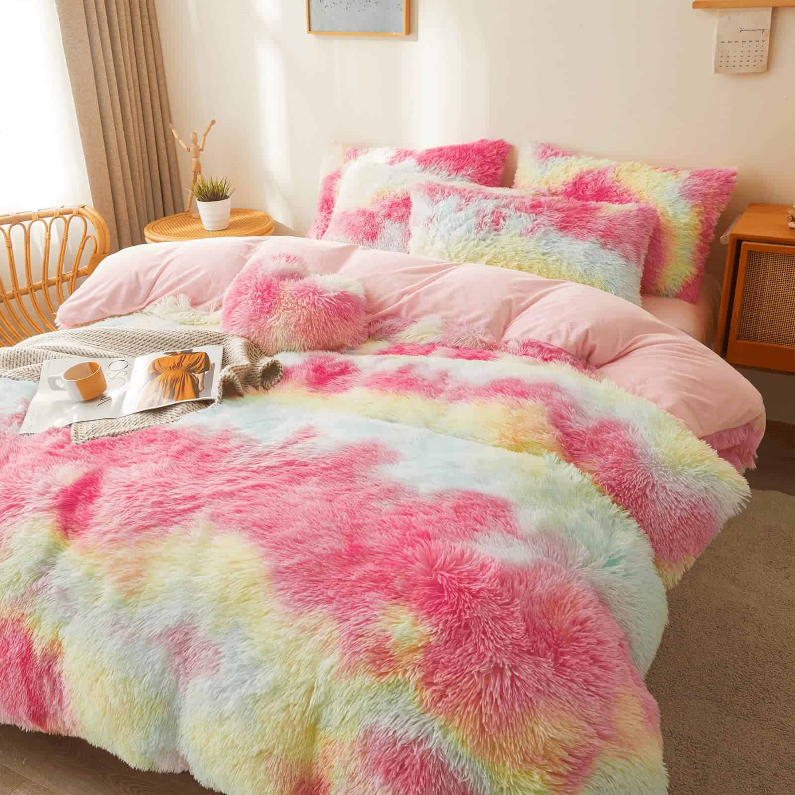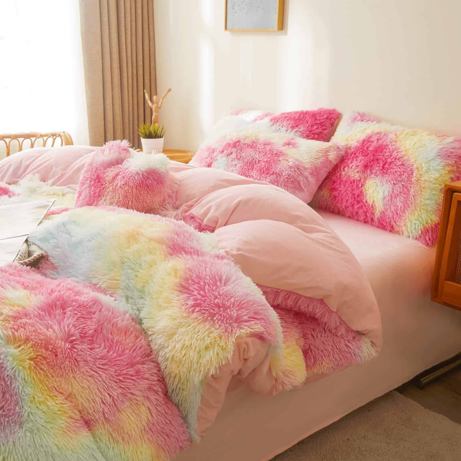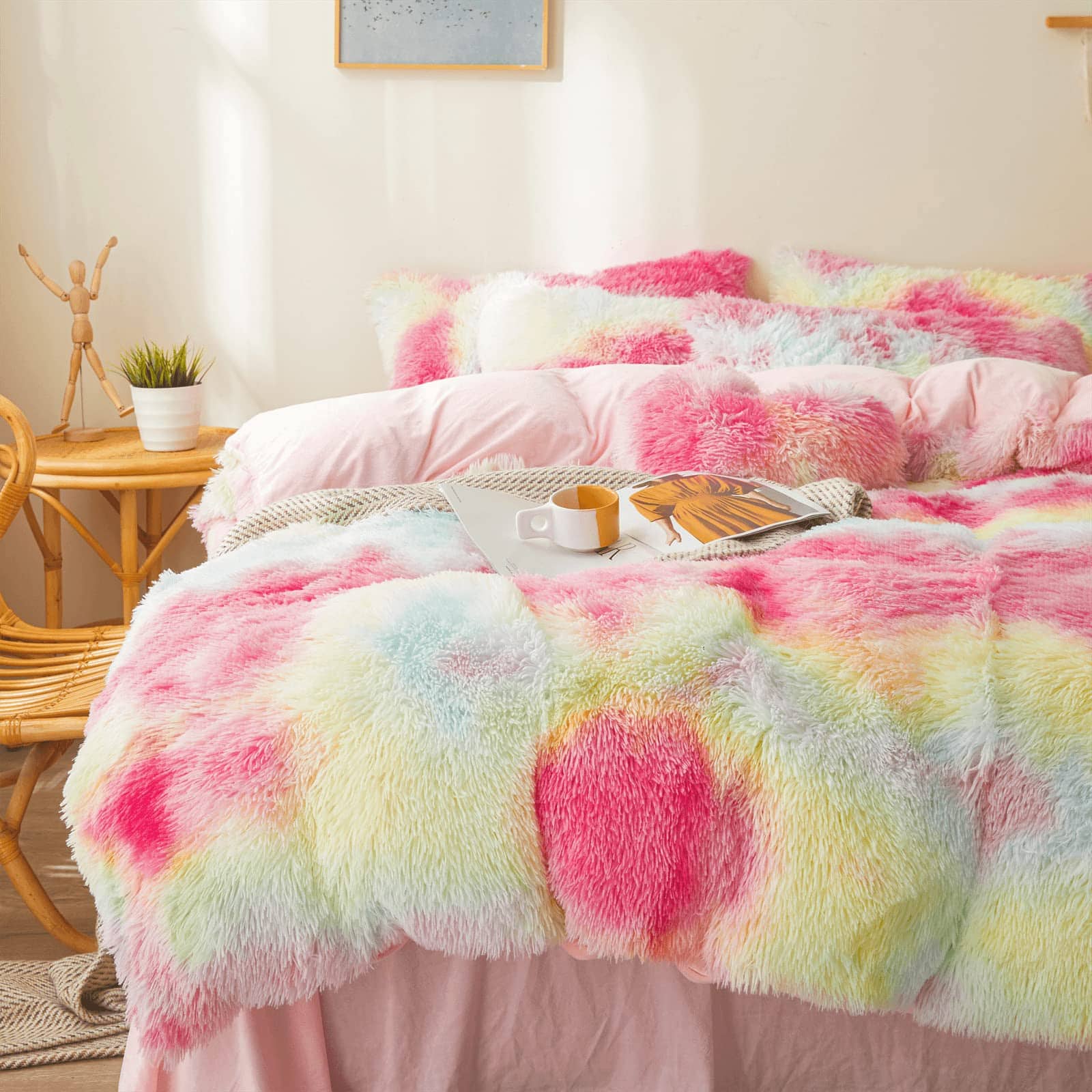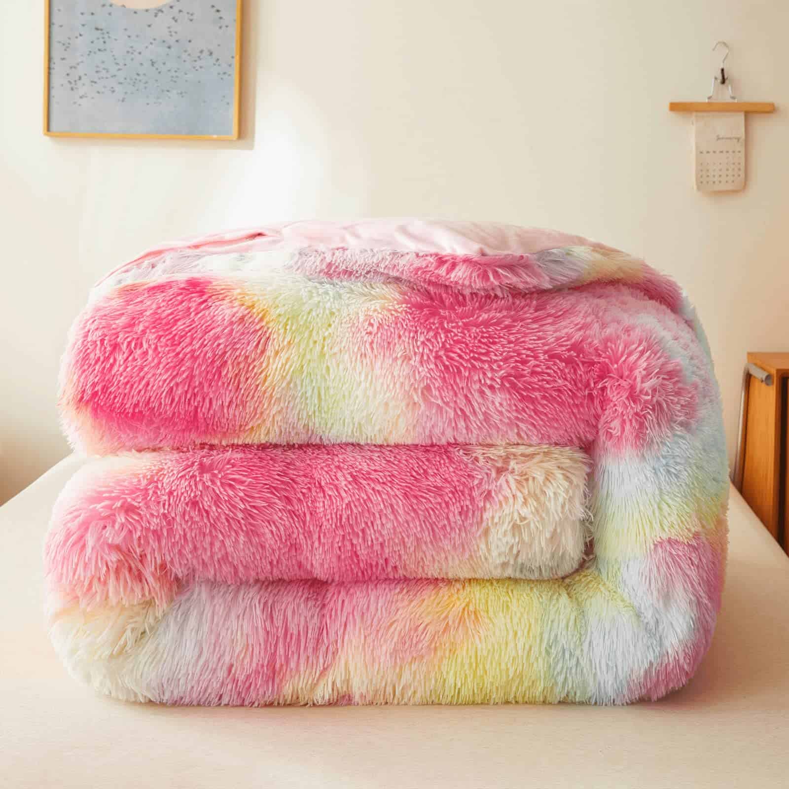 Edredón de Felpa arcoíris tamaño Queen con Relleno, Edredón