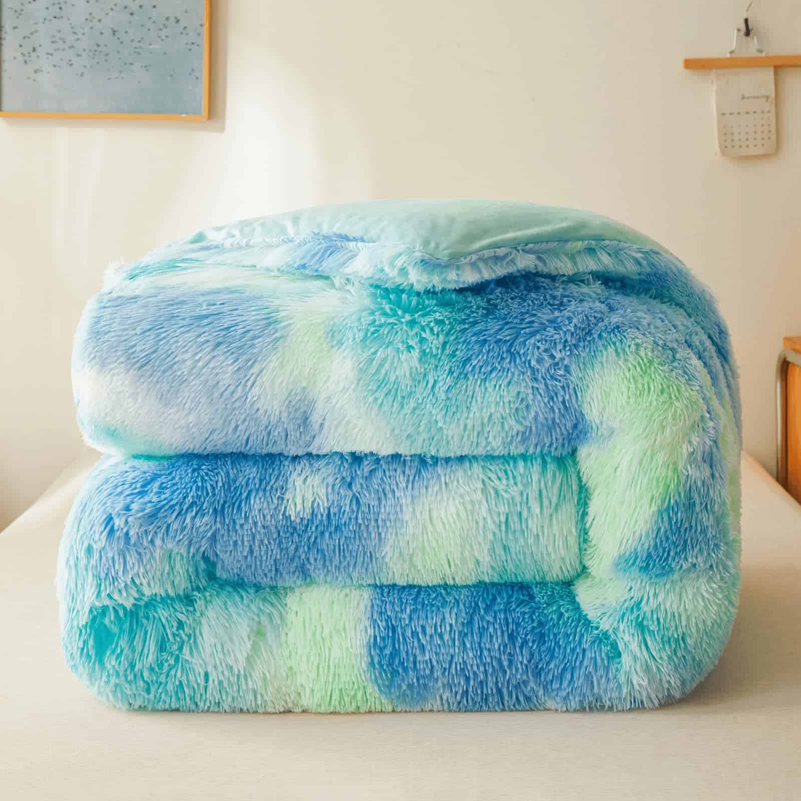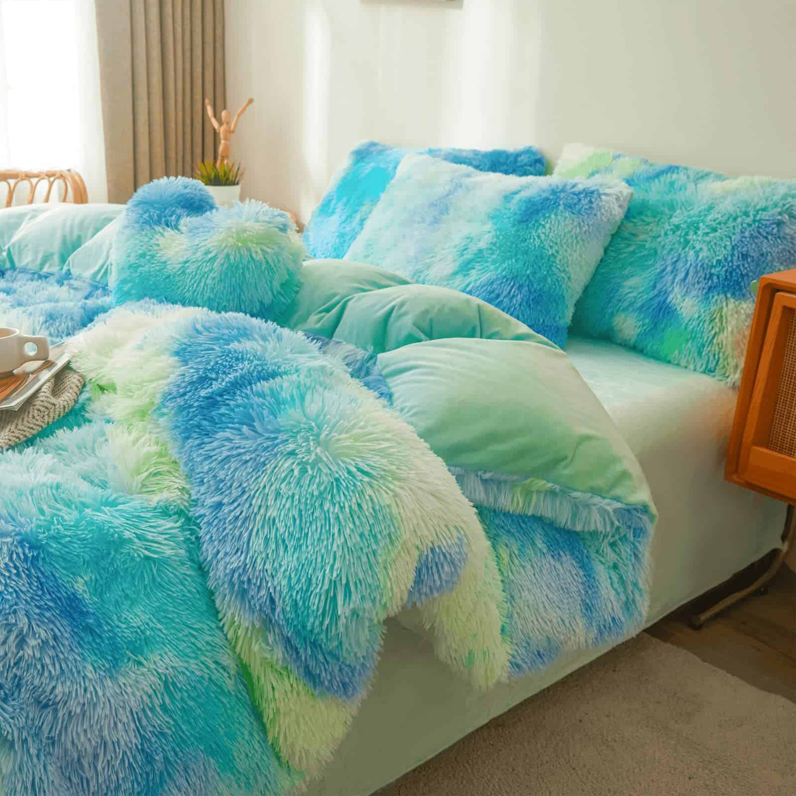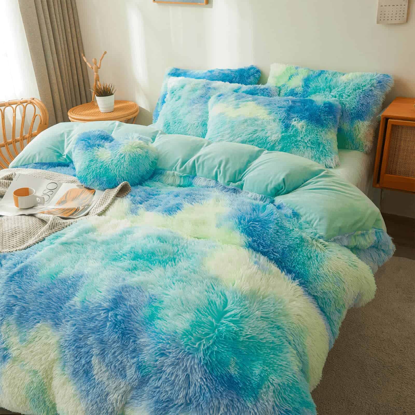 Edredón de felpa con estampado tie dye en color menta para cama Queen con relleno, acogedor edredón de piel sintética de 3 piezas. El frente utiliza un tejido de piel sintética peluda extremadamente suave con 330 gsm y la parte trasera de 280 gsm es un tejido de terciopelo exquisito. Este edredón de piel sintética 100% inmediatamente brinda una calidez acogedora y añade una dosis de suavidad. ¡Experiencia de compra definitiva de alta calidad! ¡Este edredón peludo tiene un estilo único con un aspecto encantador en la cama, el más suave y divertido juego de cama peludo. Un lujo de felpa mongol de piel sintética para crear un espacio esponjoso y acogedor, la parte trasera está forrada con un terciopelo cristal sólido, colores sólidos clásicos que combinan con muchos decorados. Es muy suave y cómodo, te hace querer quedarte en la cama todo el día. Este relleno único ofrece una suavidad superior fabricada con la tecnología Eco2 que imita el plumón, puede absorber el sudor rápidamente, mantenerse fresco, seco y cálido. El acolchado de caja recorrido de extremo a extremo asegura que la microfibra no se desplace, por lo que nunca tendrás puntos fríos en la cama, manteniéndote cómodo toda la noche. Método de mantenimiento: lavar a mano o a máquina con agua tibia, no usar secadora ni plancha, colgar o secar al aire. Regalo ideal: este juego de edredón es moderno y lujoso. ¡Redecora tu dormitorio o habitación de invitados, también es un gran regalo sorpresa de vacaciones y cumpleaños para tus familias, amigos, mujeres, hombres, niñas, niños, adolescentes y niños! El servicio al cliente receptivo estará listo para ayudarte a encontrar una solución, 24 horas al día, 7 días a la semana. No importa cuál sea tu pregunta, por favor, envíanos un correo electrónico en cualquier momento. Cada comprador que nos contactó obtuvo una solución satisfactoria, así que por favor, ordena nuestro juego de ropa de cama de piel sintética con confianza.