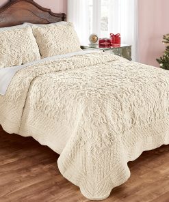 El elegante diseño de este edredón de felpa de imitación ultra suave presenta exquisitos patrones de enrejado y scroll creando una textura encantadora, mientras que los bordes festoneados añaden el toque final perfecto. Este edredón es lavable a máquina y está hecho de poliéster. Disponible en color Marfil. Tamaños disponibles en Twin (86″ x 64″), Full/Queen (86″ x 86″) o King (86″ x 102″). Completa el conjunto con la Funda de Almohada a juego, artículo 41571.