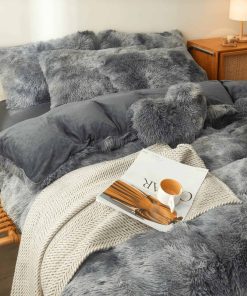 Edredón de felpa FOPPA en tie dye gris oscuro tamaño queen
