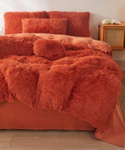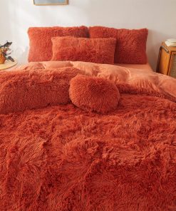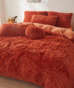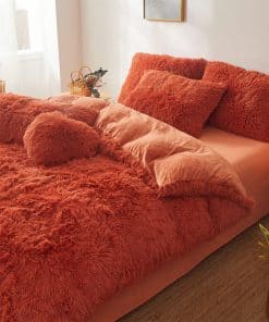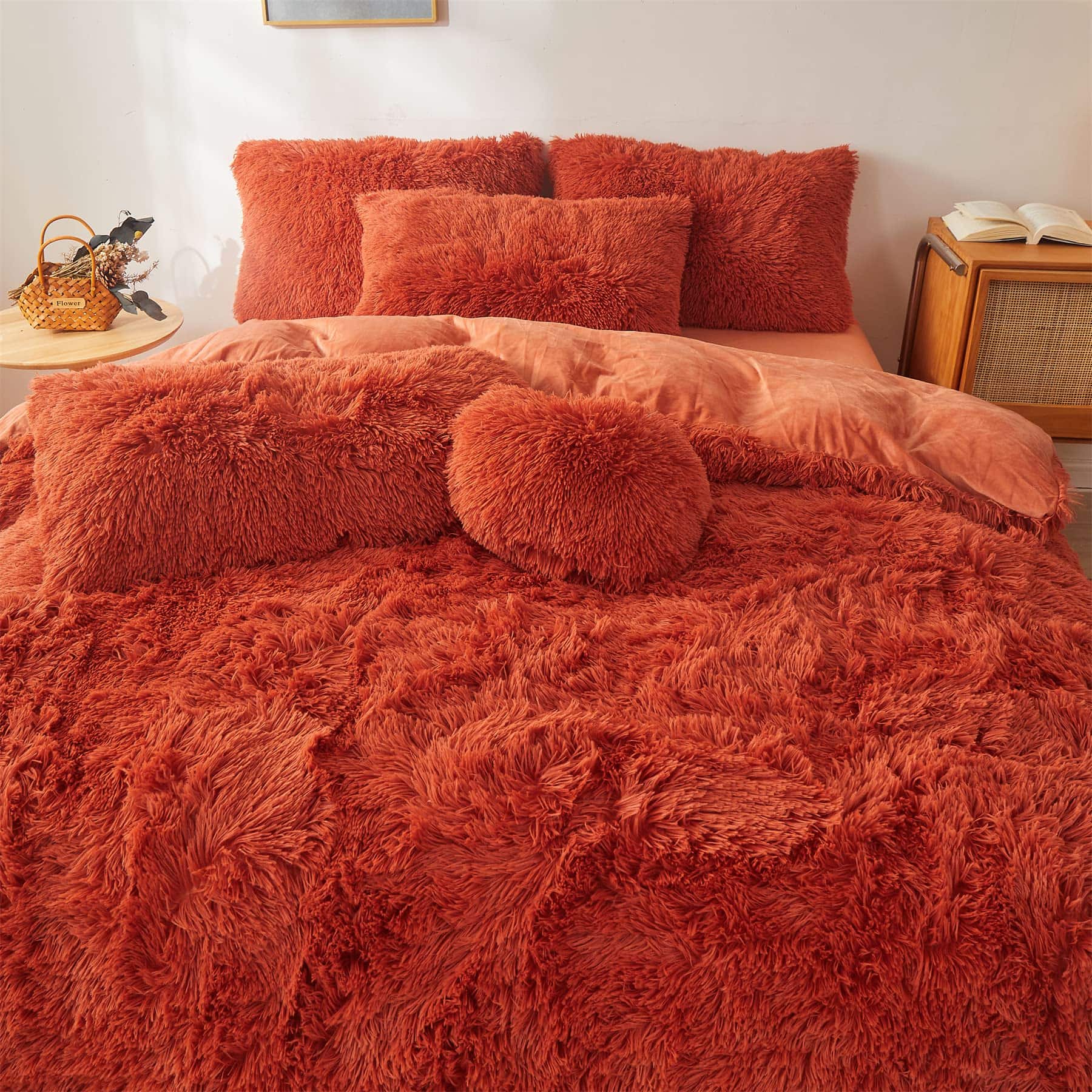 Edredón de Felpa Naranja Oscuro tamaño Queen con Relleno,