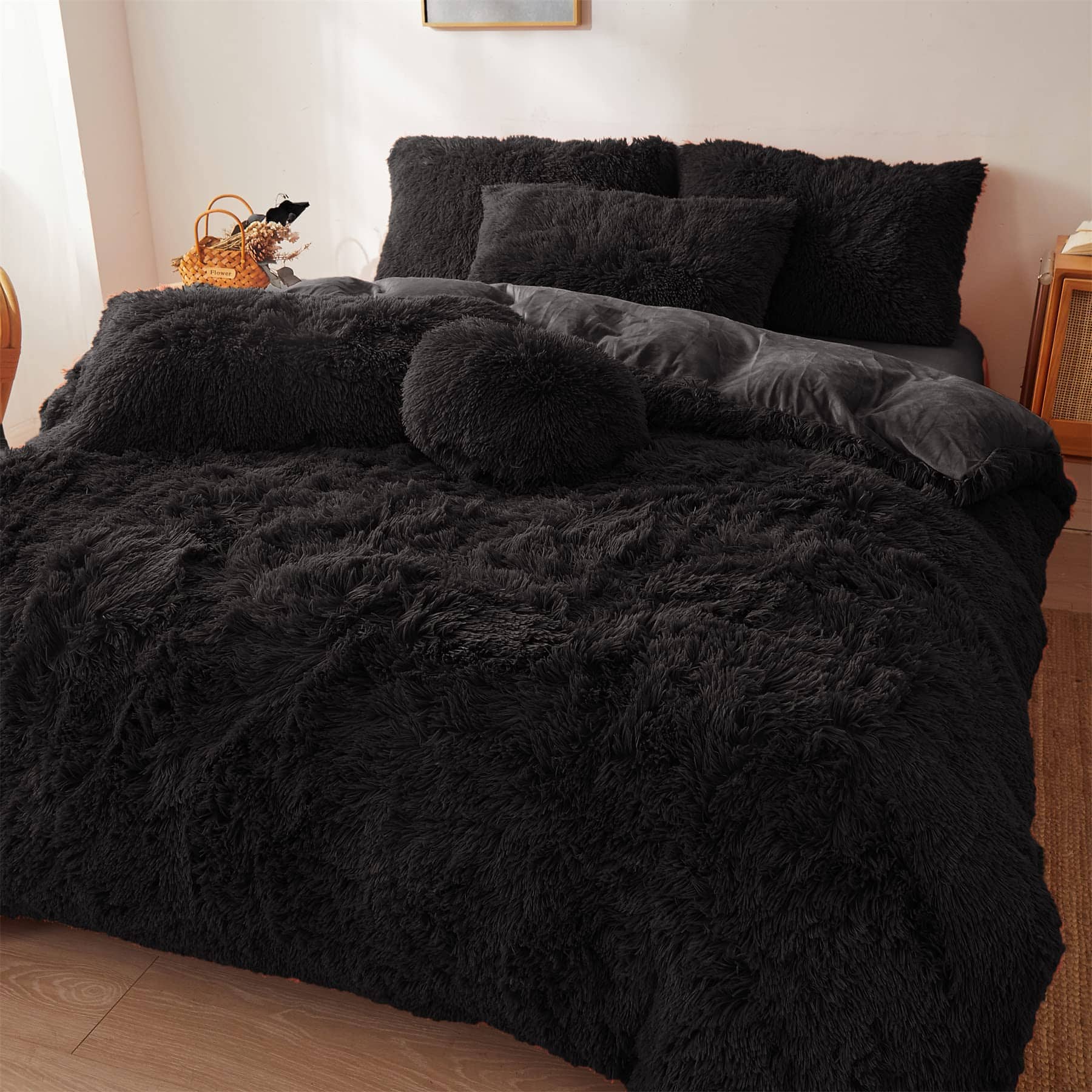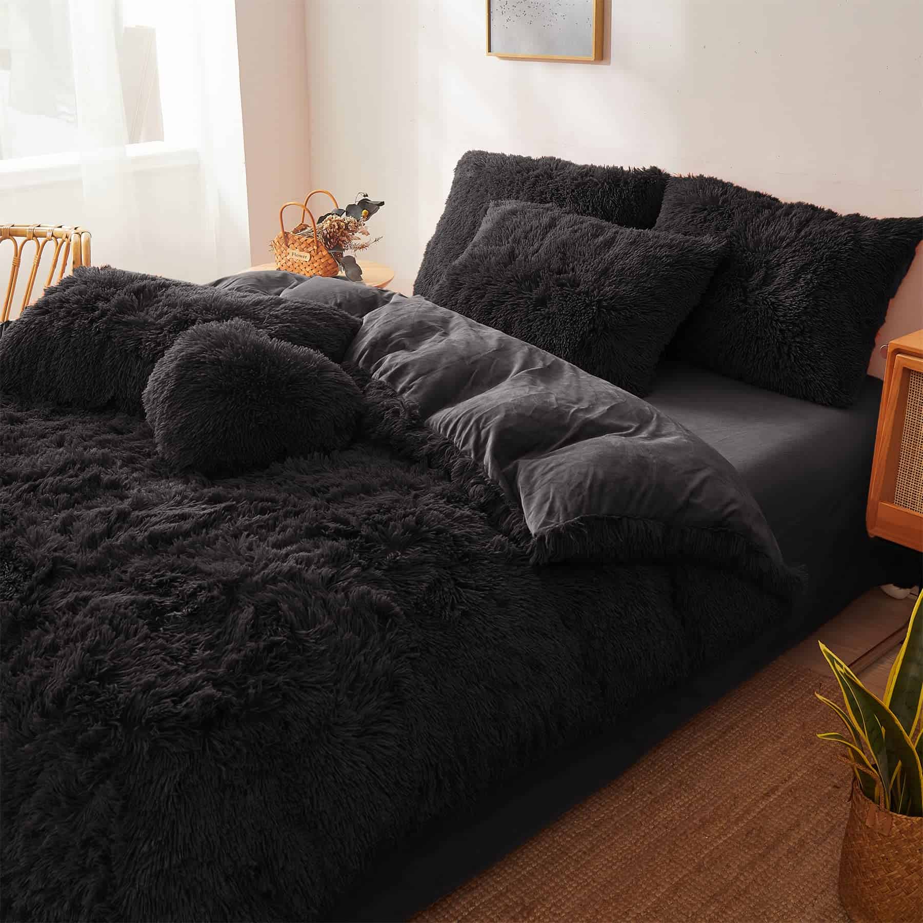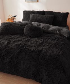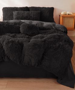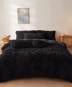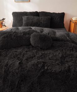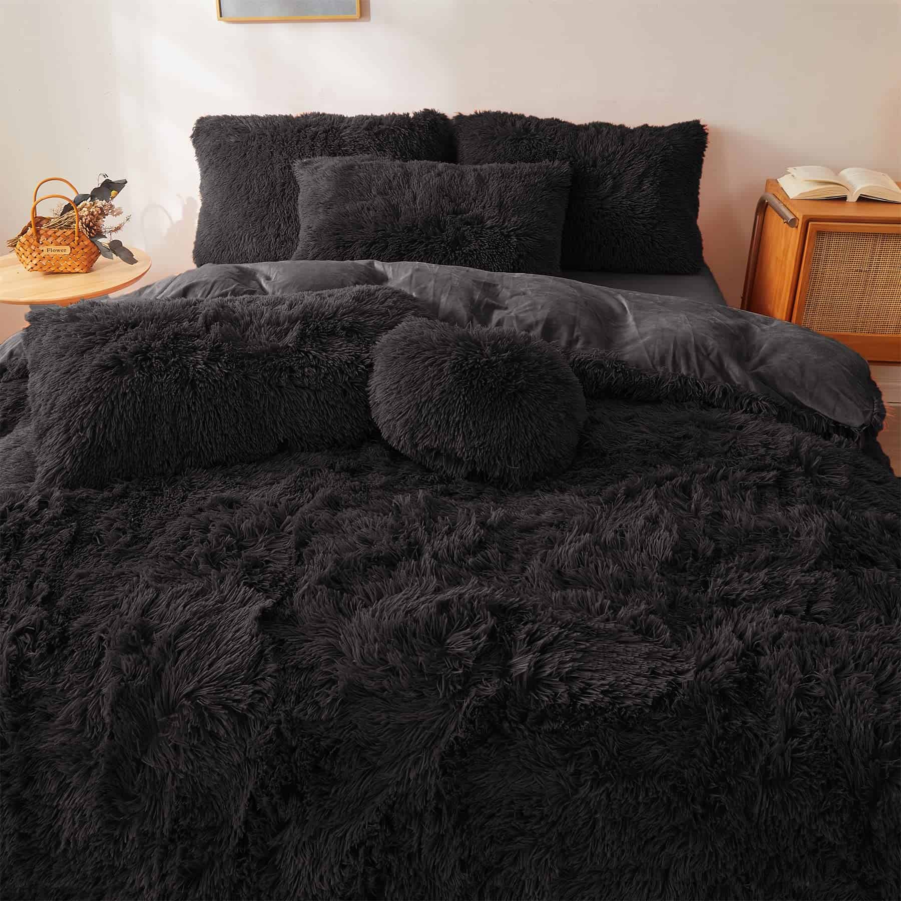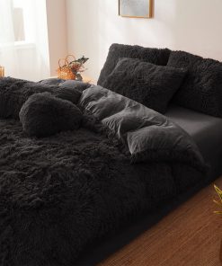 Edredón de Felpa Negra Tamaño Queen con Relleno, Suave