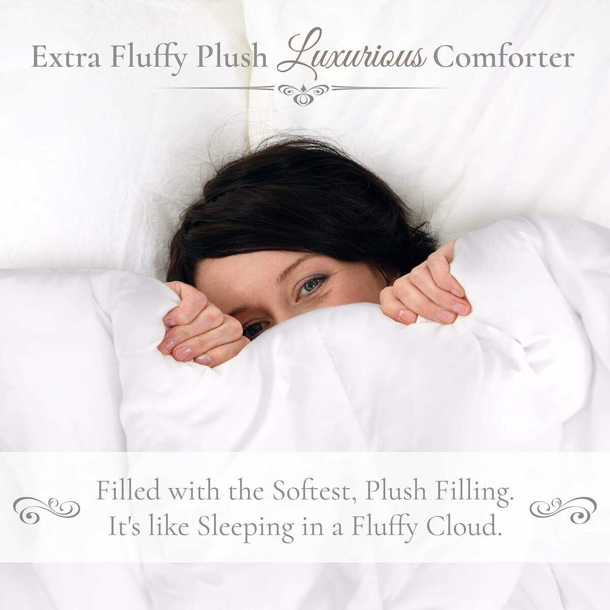 3. Edredón transpirable: El último edredón esponjoso es un edredón transpirable que ofrece una comodidad excepcional. Es perfecto para usar en todas las estaciones y está disponible en tamaños king, king tamaño extra grande, queen, queen tamaño extra grande y twin. Este edredón hipoalergénico de fibra alternativa de microfibra para todas las estaciones es la alternativa perfecta a las plumas tradicionales. El edredón alternativo de plumas queen también está disponible para aquellos que desean un tamaño más pequeño.