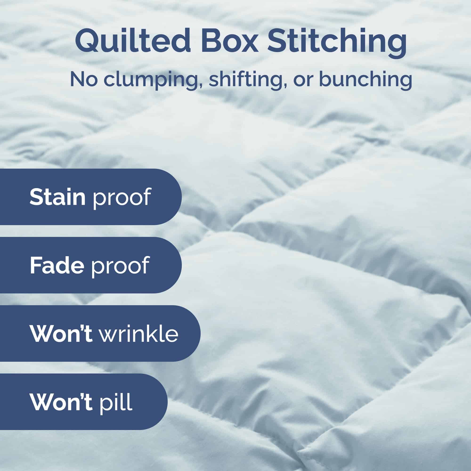Suavidad y transpirabilidad celestial: ¿Cansado de edredones que son demasiado calientes y pesados en verano o que se congelan en invierno? Con el edredón CGK Unlimited en tu cama, no necesitarás cambiar a una manta diferente cada temporada. Más suave que el plumón de ganso y especialmente diseñado para la transpirabilidad y una circulación de aire superior, nuestro edredón te mantiene acogedor y cómodo durante las cuatro estaciones. ¡Tu sueño se sentirá como el cielo de un hotel! Nuestro edredón grueso presenta fibras alternativas de relleno de silicona, para que puedas respirar más profundo y más fácilmente mientras duermes. Fácil de limpiar: ¡Seguro para la lavadora! Muchas marcas afirman que sus edredones se pueden lavar en la lavadora, pero luego se deshacen y deshilachan en tu lavadora, incluso en el ciclo suave. Nuestro inserto de edredón premium está hecho para durar, con una construcción de puntada en caja duradera para ayudar a mantener su forma y prevenir el desplazamiento. Mantén tu edredón hermoso y vibrante en casa (no se requiere lavado en seco) con la configuración fría de tu lavadora, luego seca a temperatura baja. Empaque de calidad: Nuestro lujoso edredón CGK no viene empaquetado al vacío y comprimido en un embalaje pequeño. Recibirás un empaque premium, porque creemos que un edredón de calidad premium merece un gran empaque. Llega a tu puerta esponjoso y listo para usar.