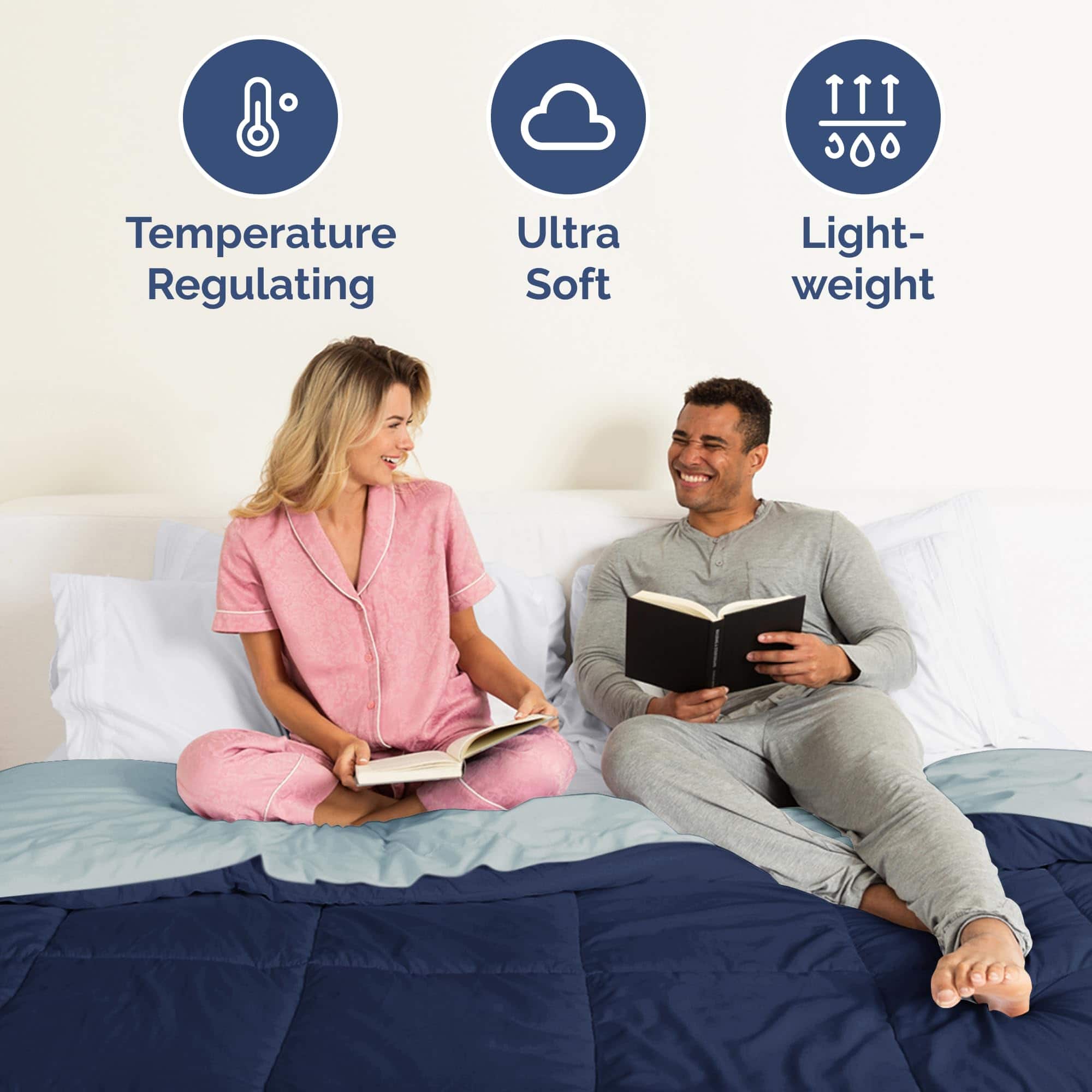 Edredón de Fibra Alternativa Reversible Azul y Azul Claro