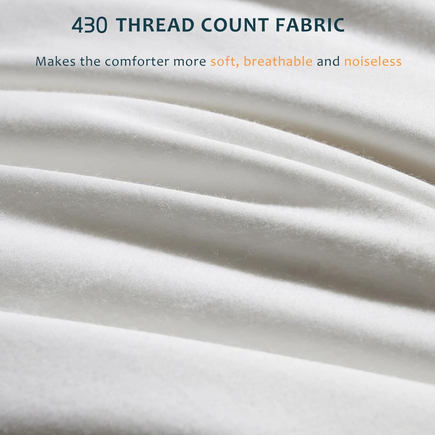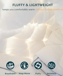Nuestro edredón de fibra de plumón ha pasado la certificación STANDARD 100 por OEKO-TEX para tu tranquilidad. La cubierta o forro está hecha de un suave tejido de algodón-poliéster con 430 hilos que hace que la manta sea suave, transpirable y silenciosa, como dormir en una nube. Puedes disfrutar de la comodidad de nuestro edredón en cualquier época del año, ya sea invierno o verano.