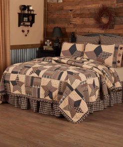Edredón de lujo King de 120×105″ con un diseño de patchwork country en negro suave y beige. Fabricado con materiales de alta calidad, 100% algodón con relleno 100% algodón para mayor comodidad. Este edredón forma parte de una colección que incluye coordinados de ropa de cama, tratamientos para ventanas y artículos de cocina a juego.