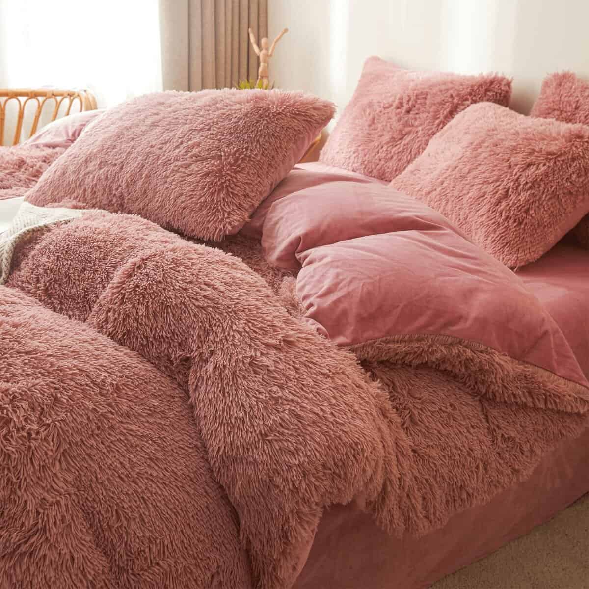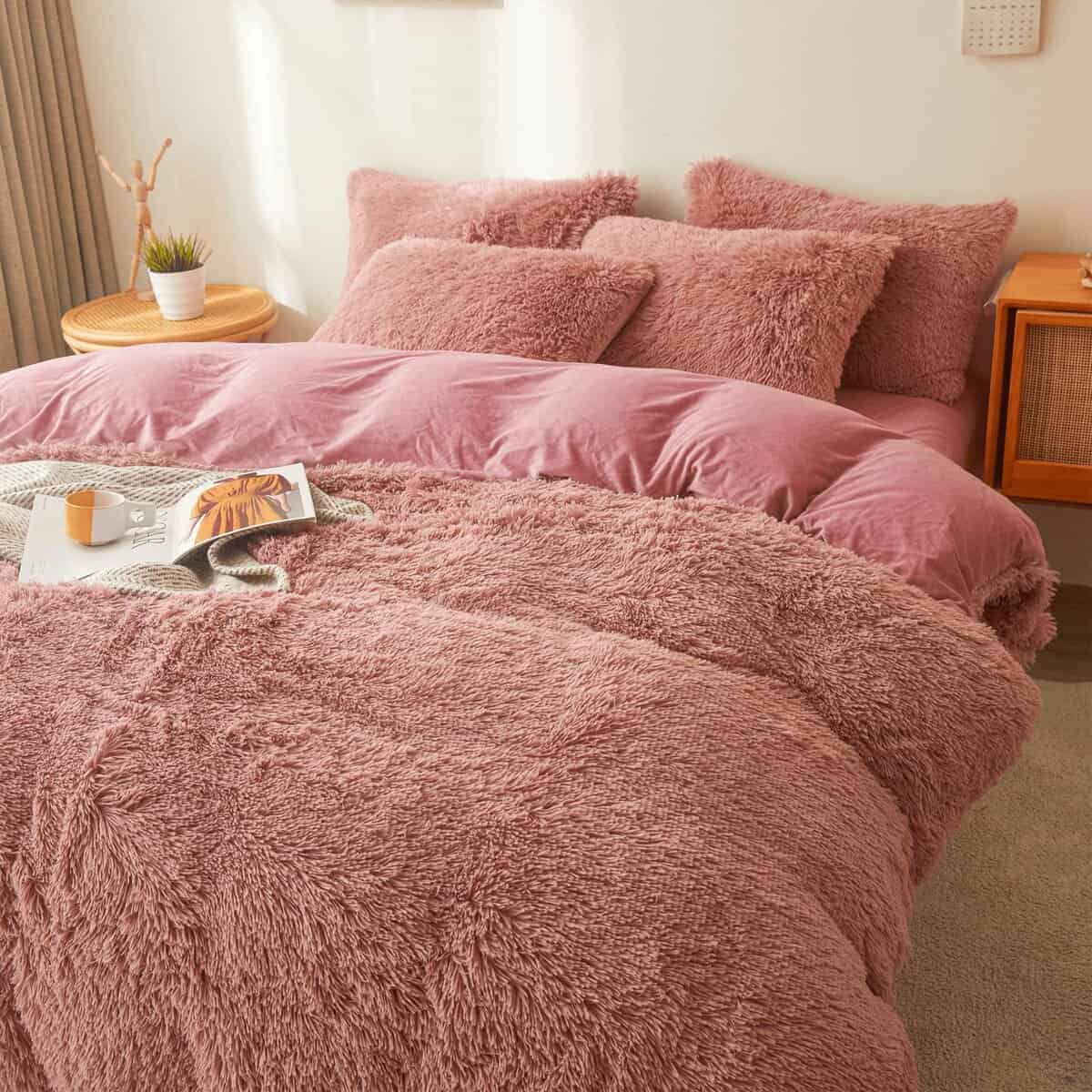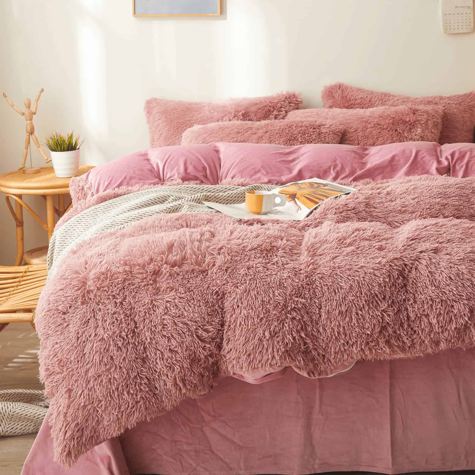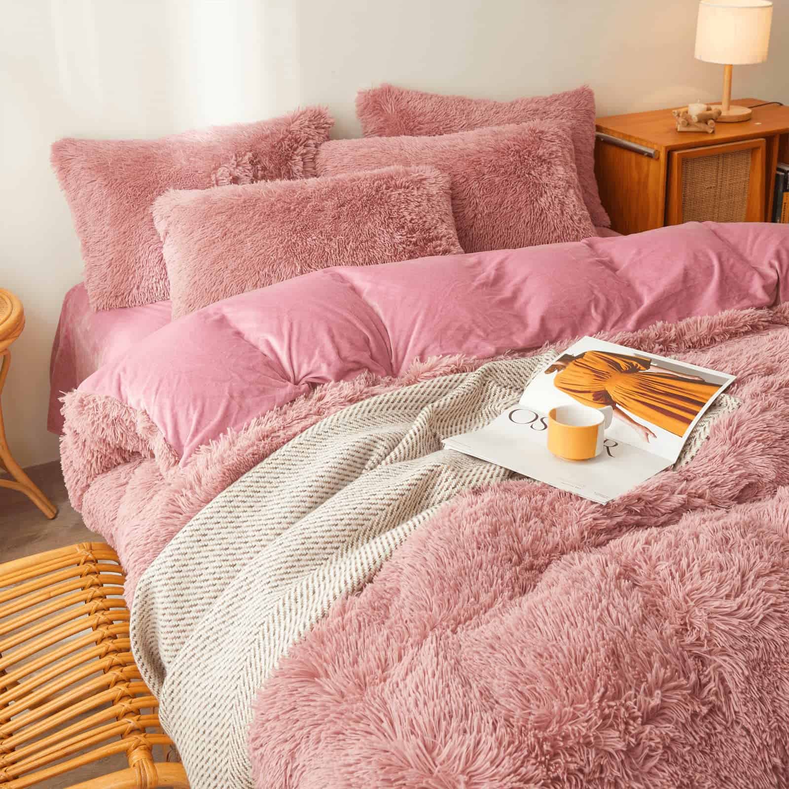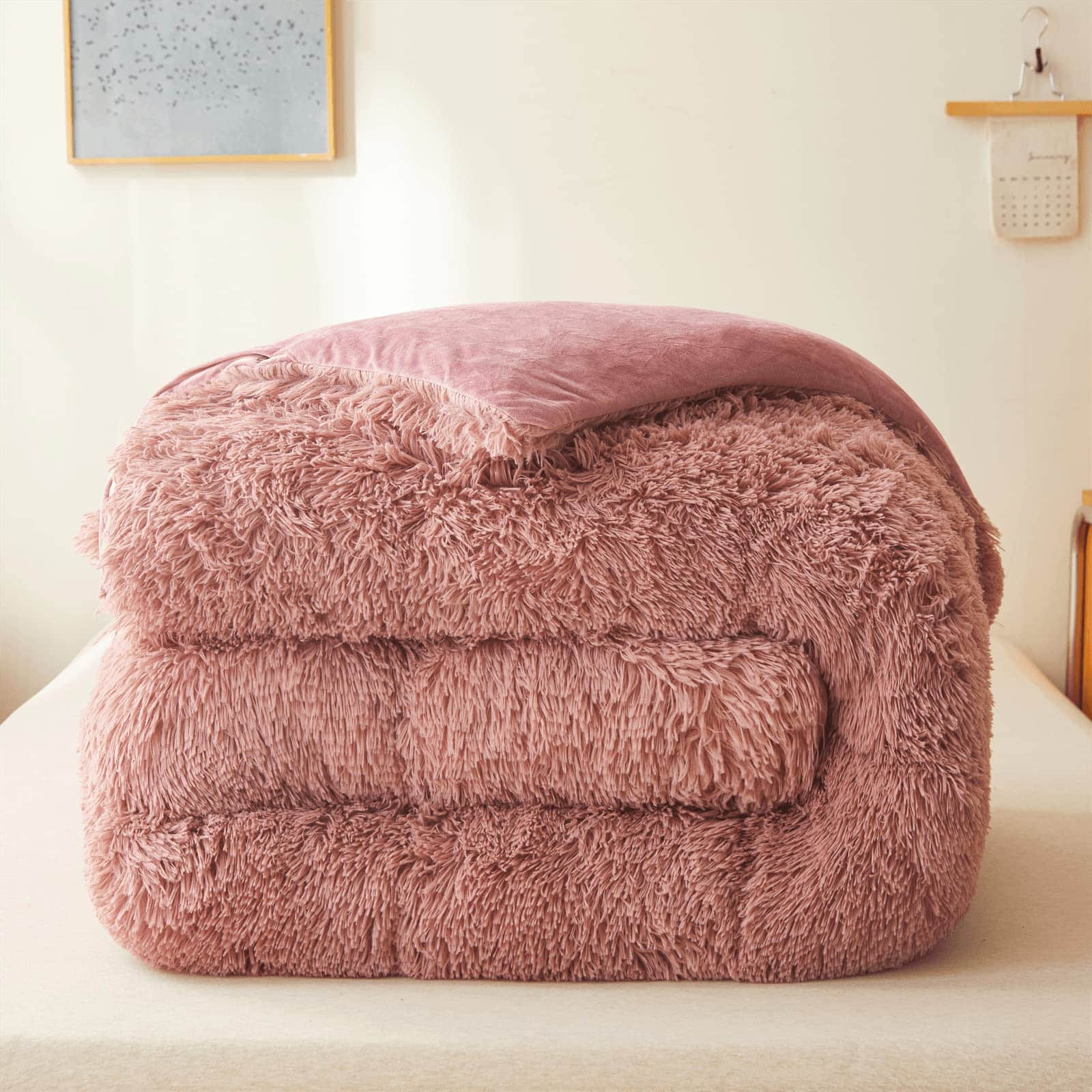 Edredón de Peluche Rosa Antiguo Tamaño Queen con Relleno,